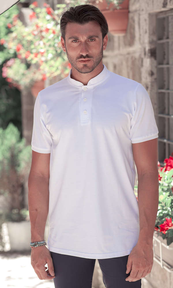 3 bottoni – costina rinforzata su manica – collo coreano, tessuto egiziano in piquet elasticizzato, sanforizzato (trattamento che riduce il restringimento al lavaggio), reattivo (non scolora al lavaggio), indumento a norma UNI EN ISO 13688:2013 + OEKO-Tex, lavabile a 40 gradi, produzione Italiana.