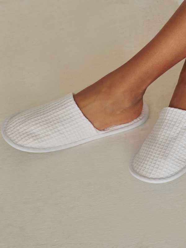 Suola: fibra mista (65% poliestere, 35% cotone). Ciabattine da albergo o spa in tessuto a nido d’ape. Disponibili in 2 taglie. 220 g/m2