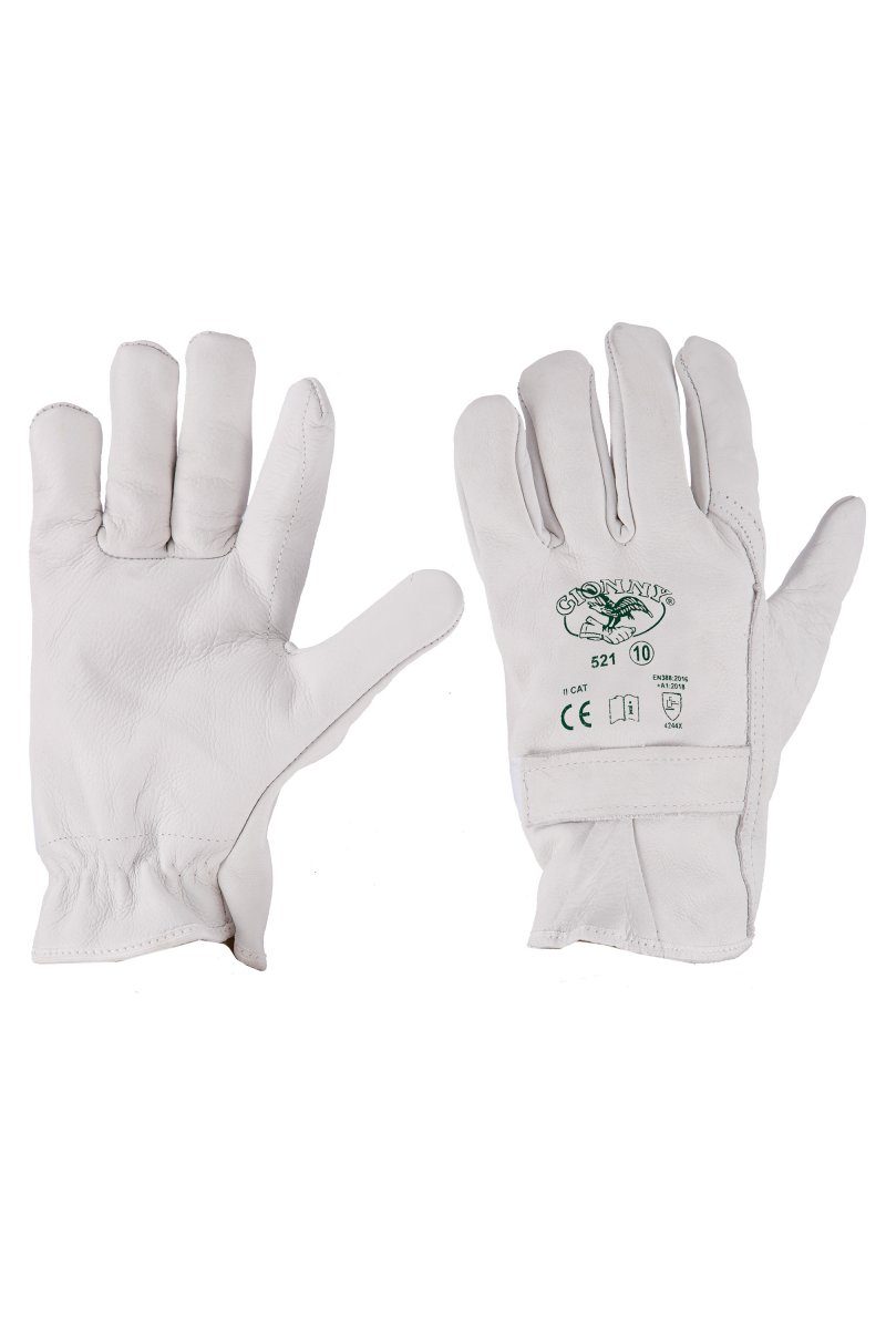 Guanto in fiore bovino – doppio palmo antipuntura. – Caratteristiche: morbido, molto resistente – Punti di forza: comfort, destrezza – Campi d’impiego: manipolazioni generiche in ambiente asciutto, antipuntura.