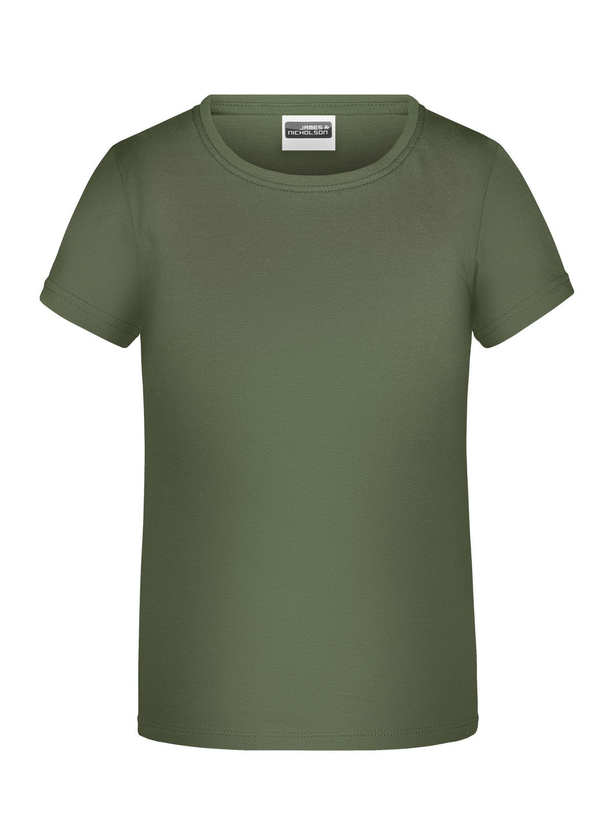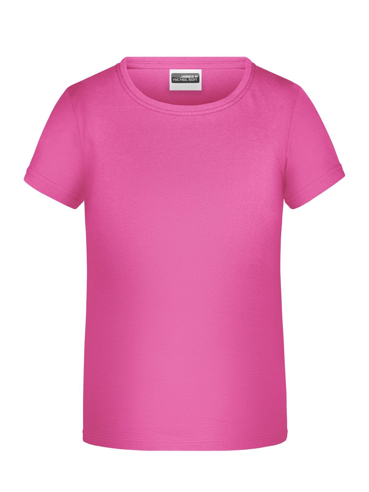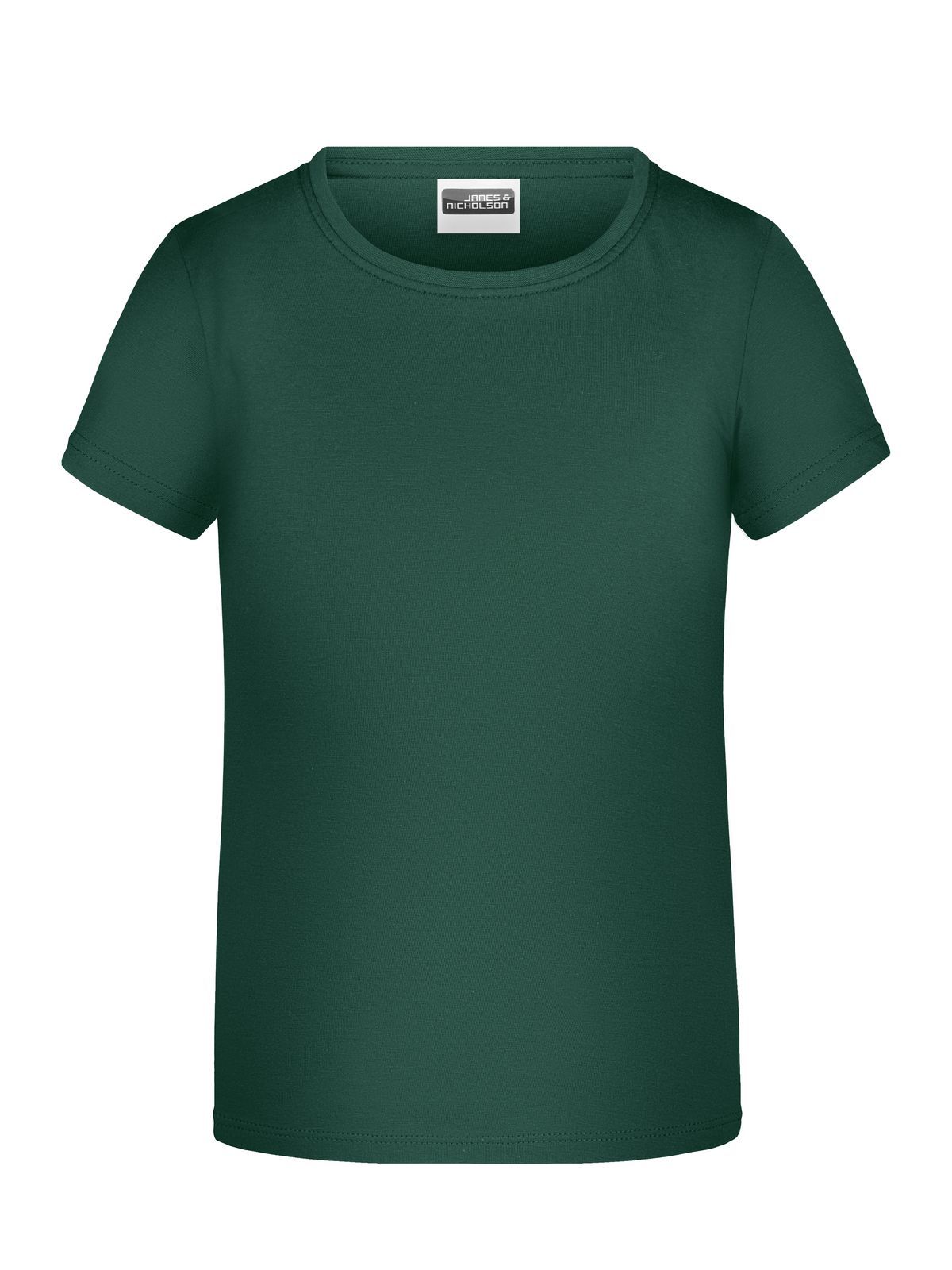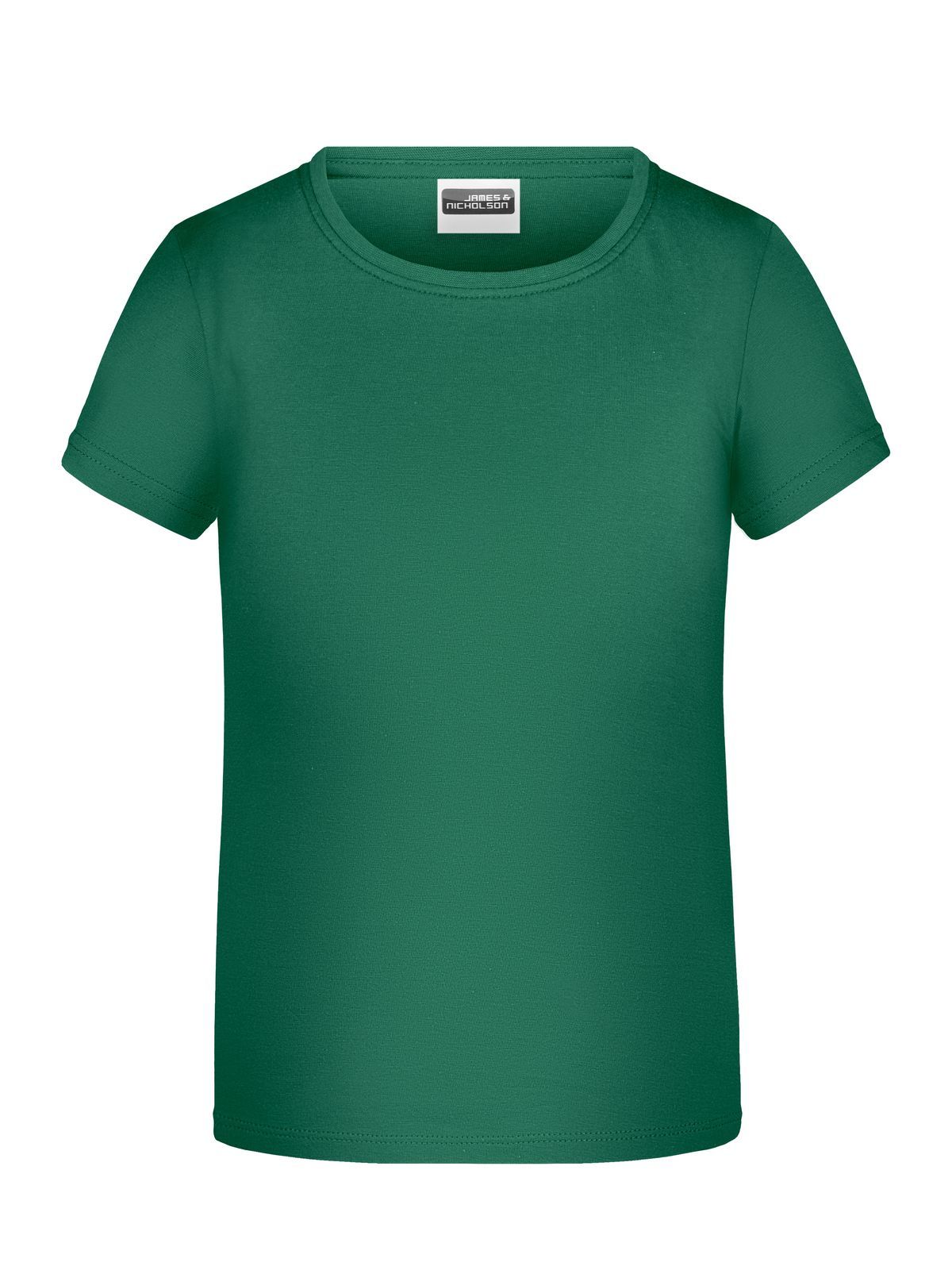 T-shirt girocollo da bambino con elastico al collo in elastane, leggermente sfiancata, etichetta removibile. Busto tubolare.