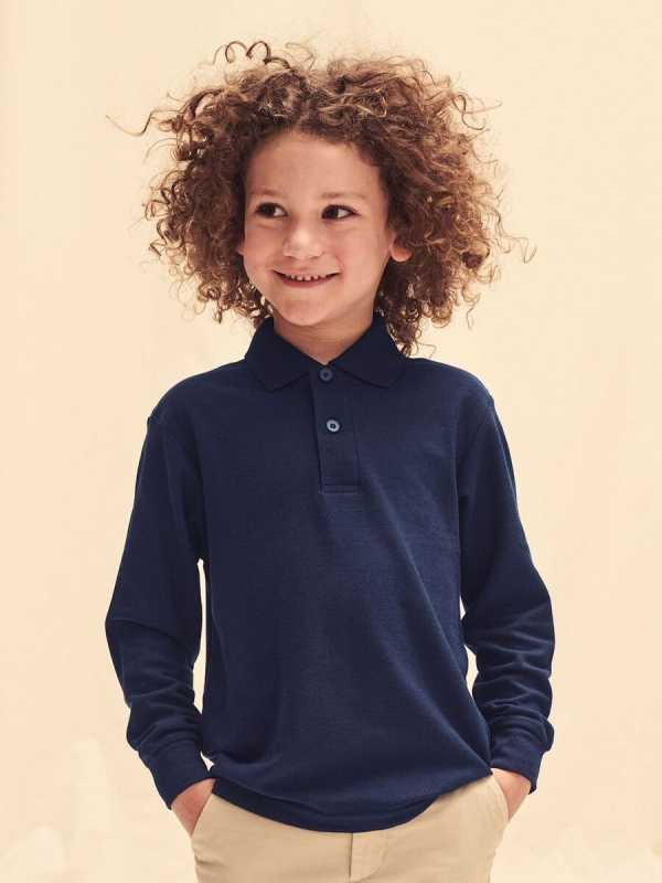 Polo maniche lunghe set-in, 2 bottoni tono su tono, polsino in costina con elastane, struttura con cuciture laterali. (Col. 30: 170 g/m²).