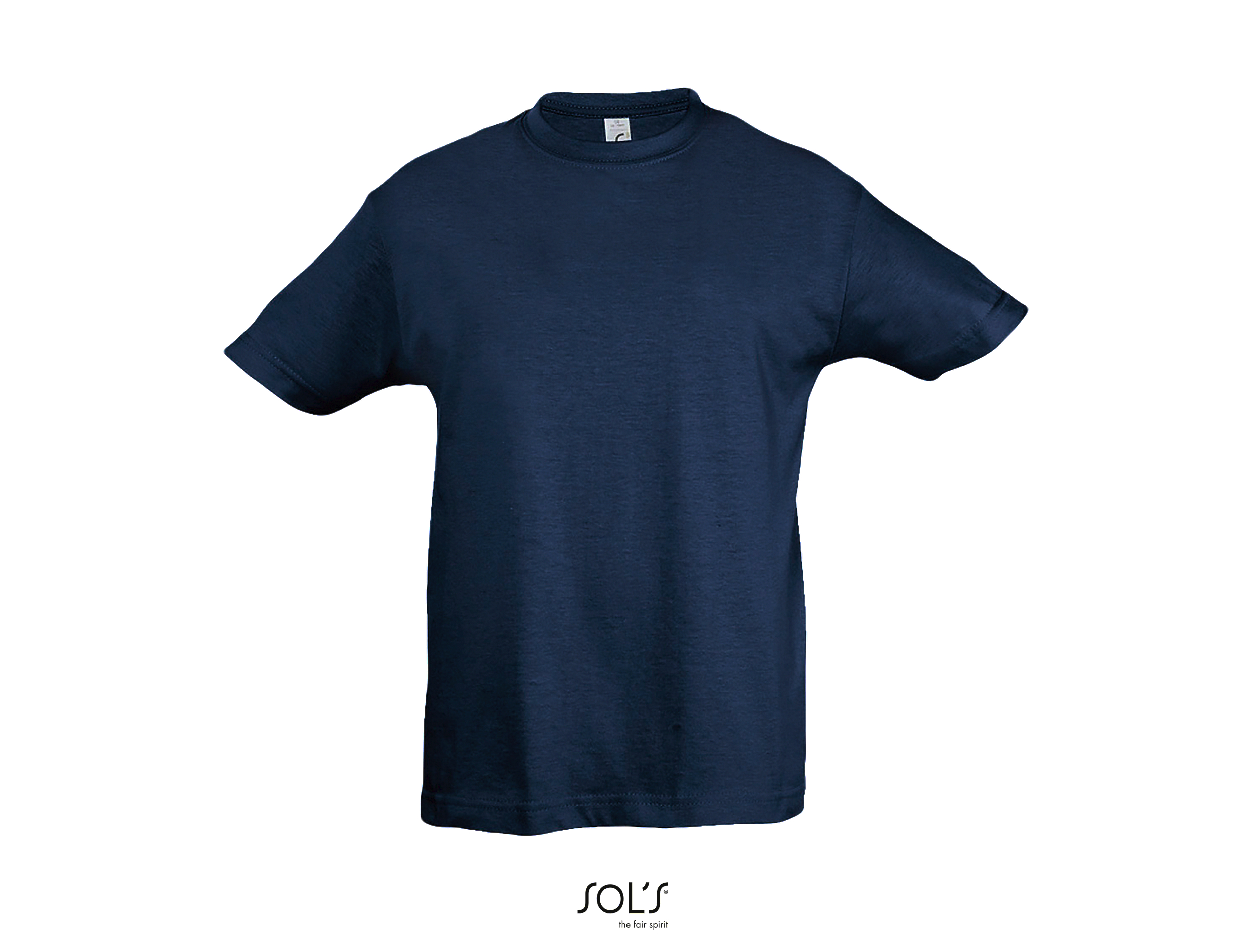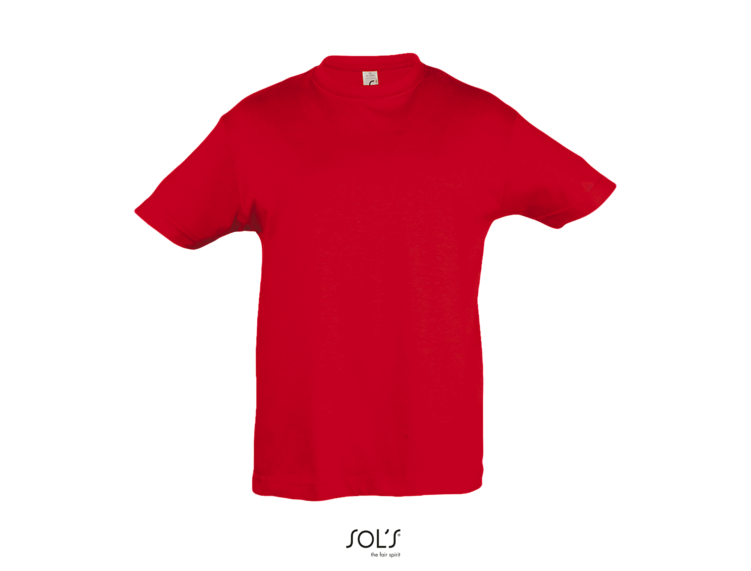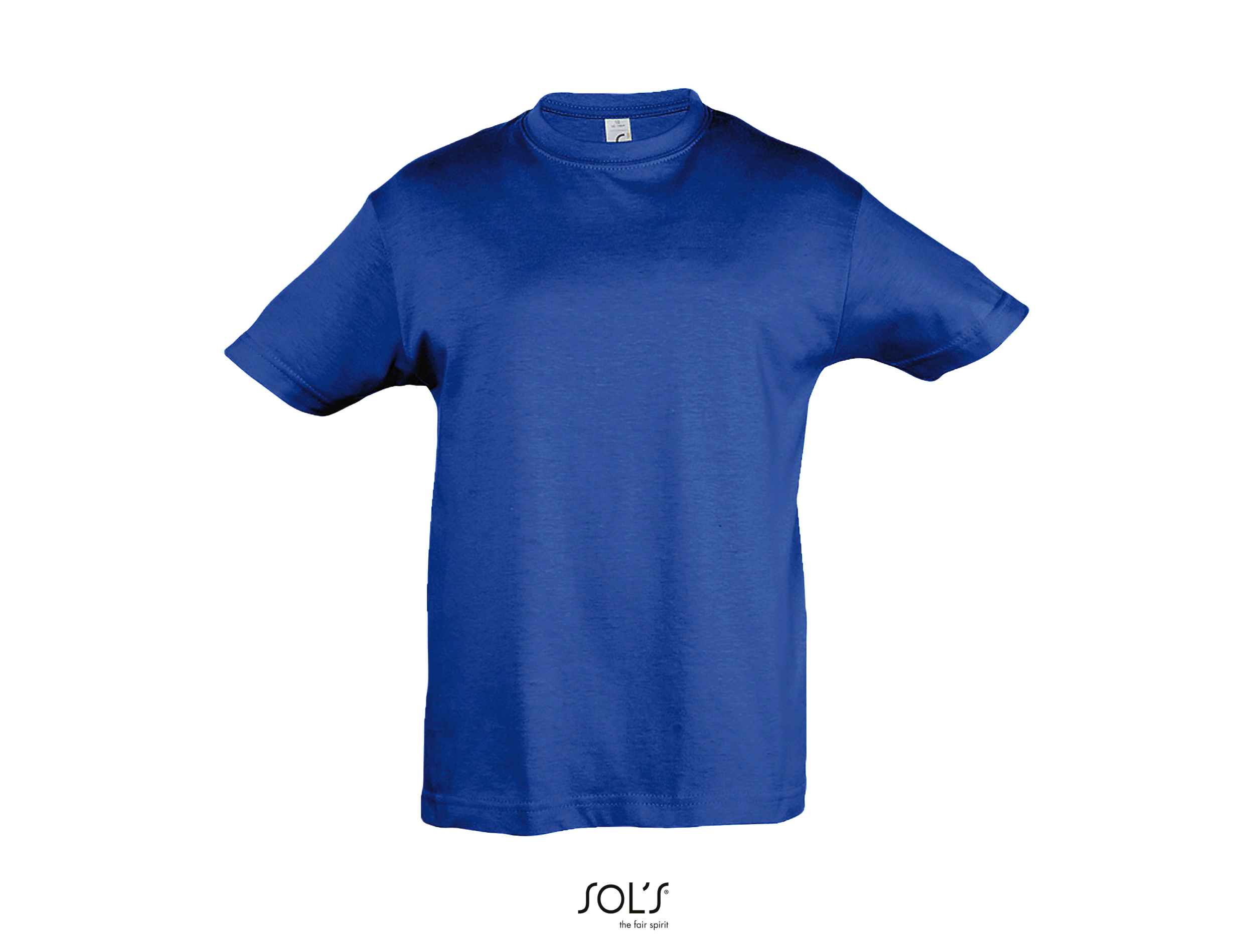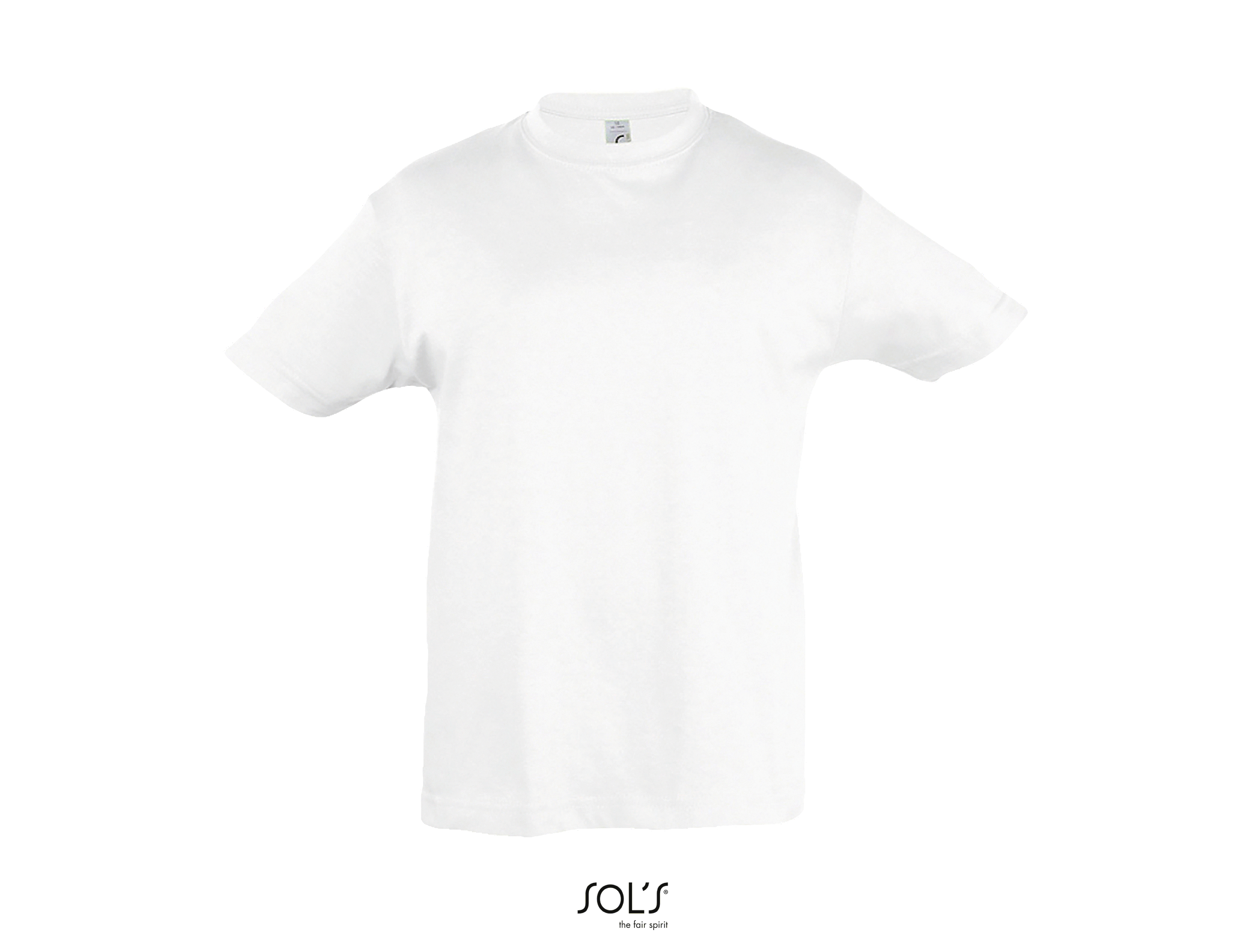Nastro di rinforzo sul collo, girocollo con bordo a costina con elastan, maniche corte, tagliata e cucita nella taglia 2-4 anni, tubolare a partire da 6 anni.