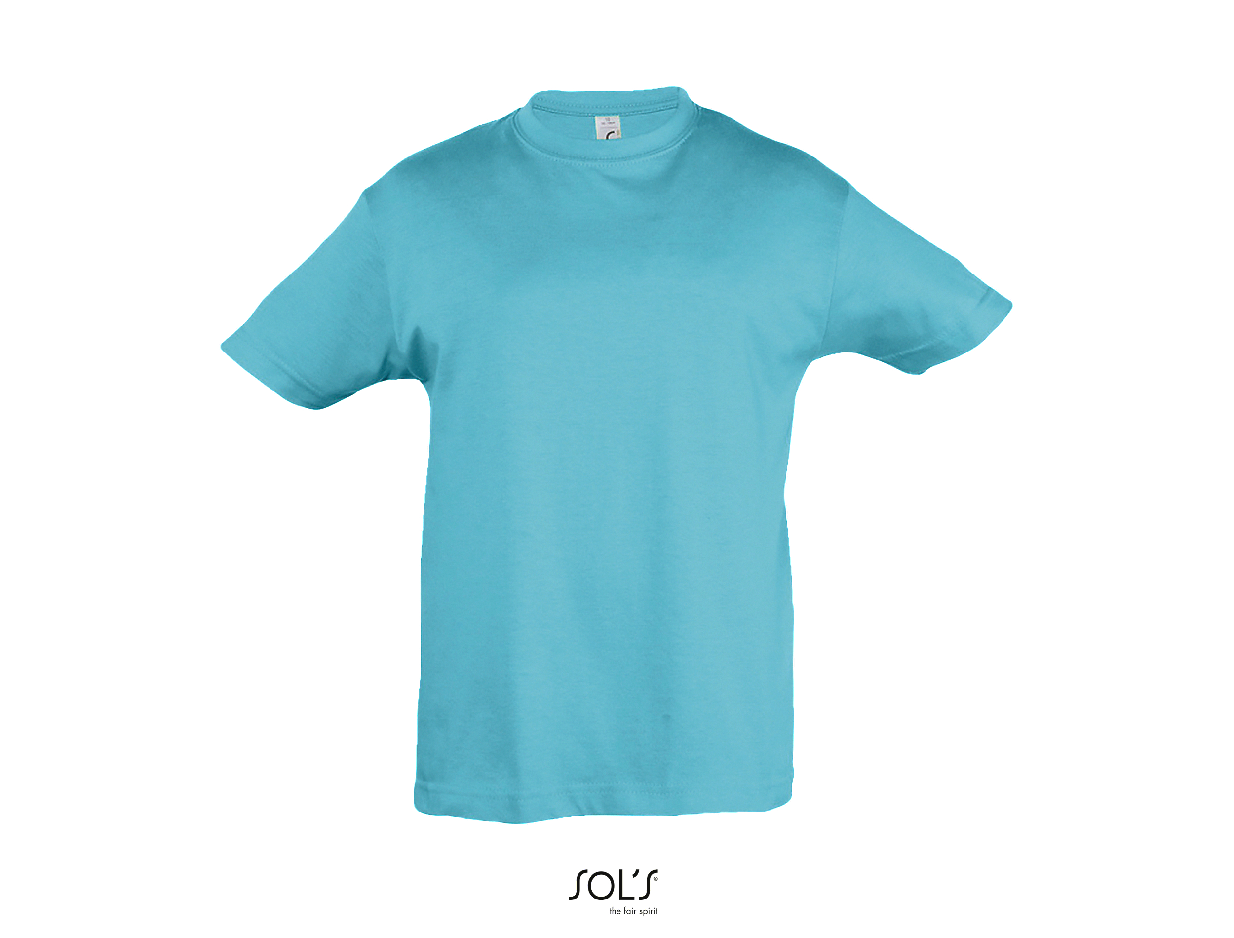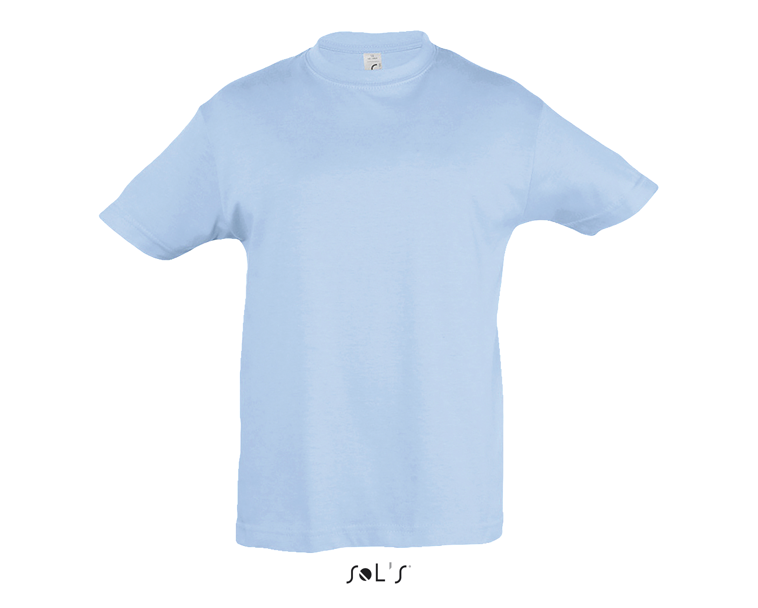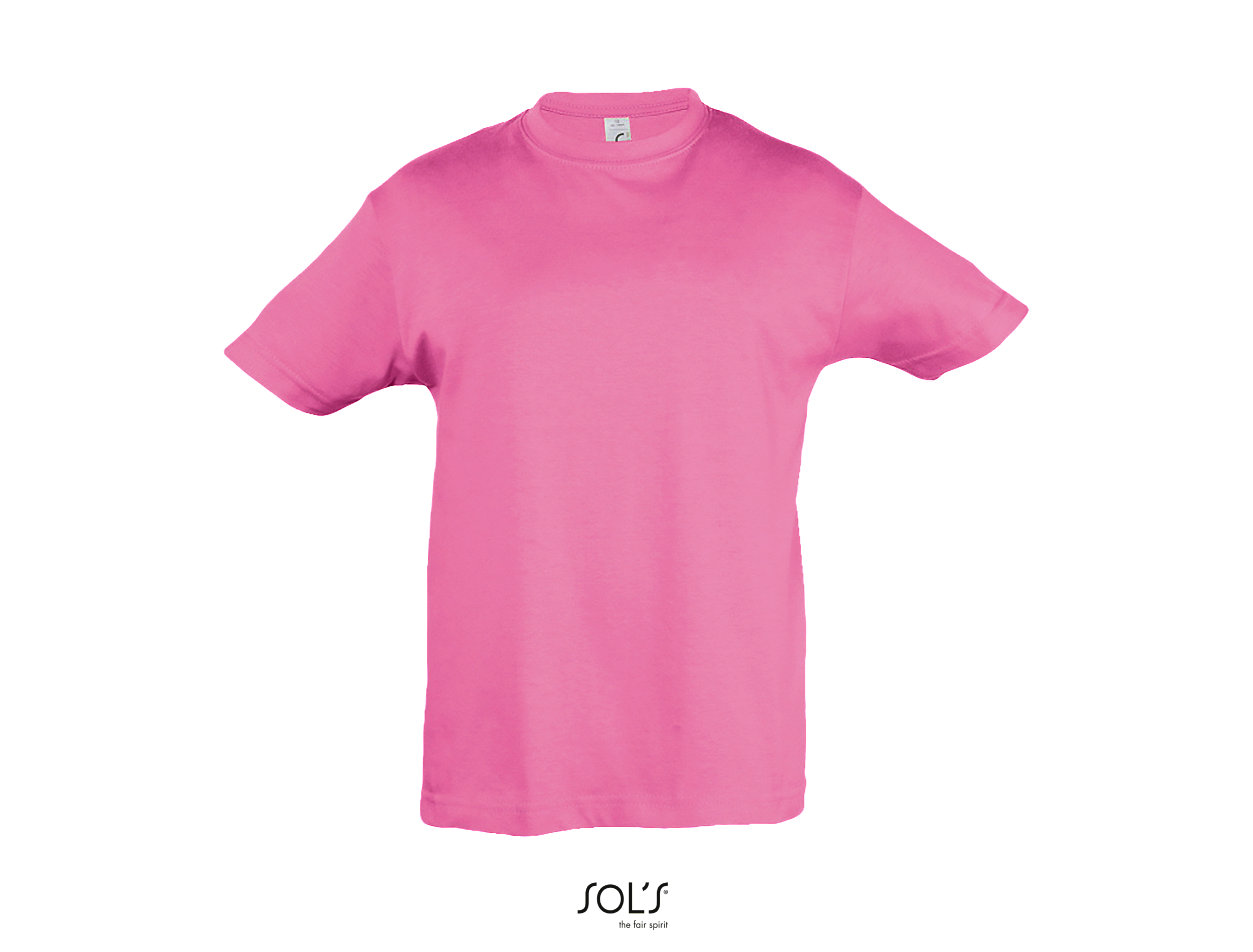 Nastro di rinforzo sul collo, girocollo con bordo a costina con elastan, maniche corte, tagliata e cucita nella taglia 2-4 anni, tubolare a partire da 6 anni.