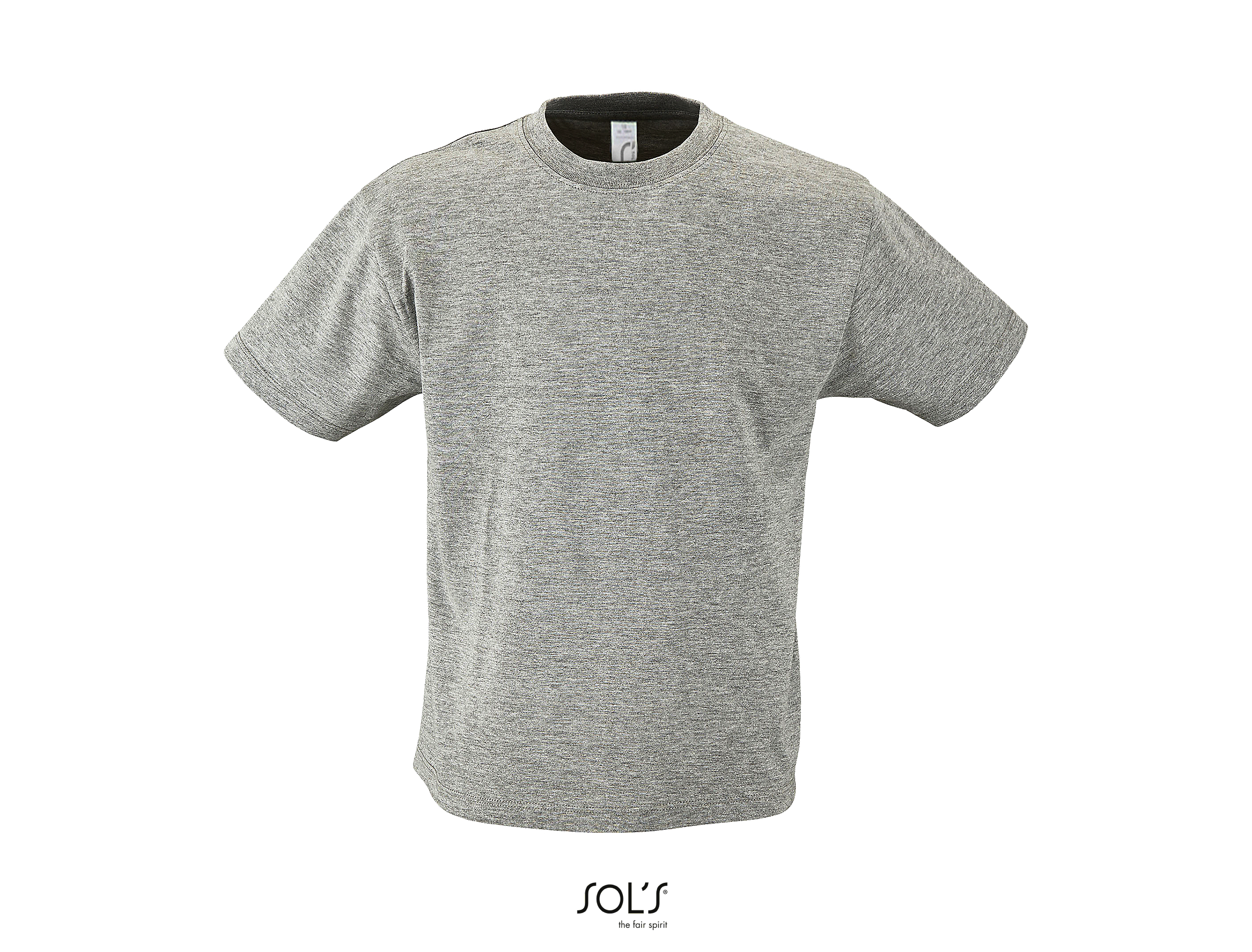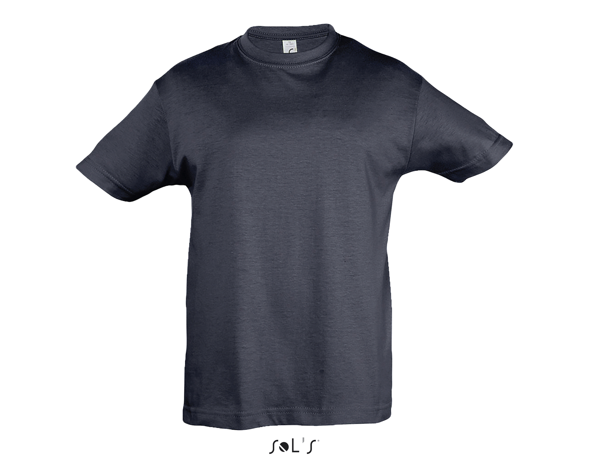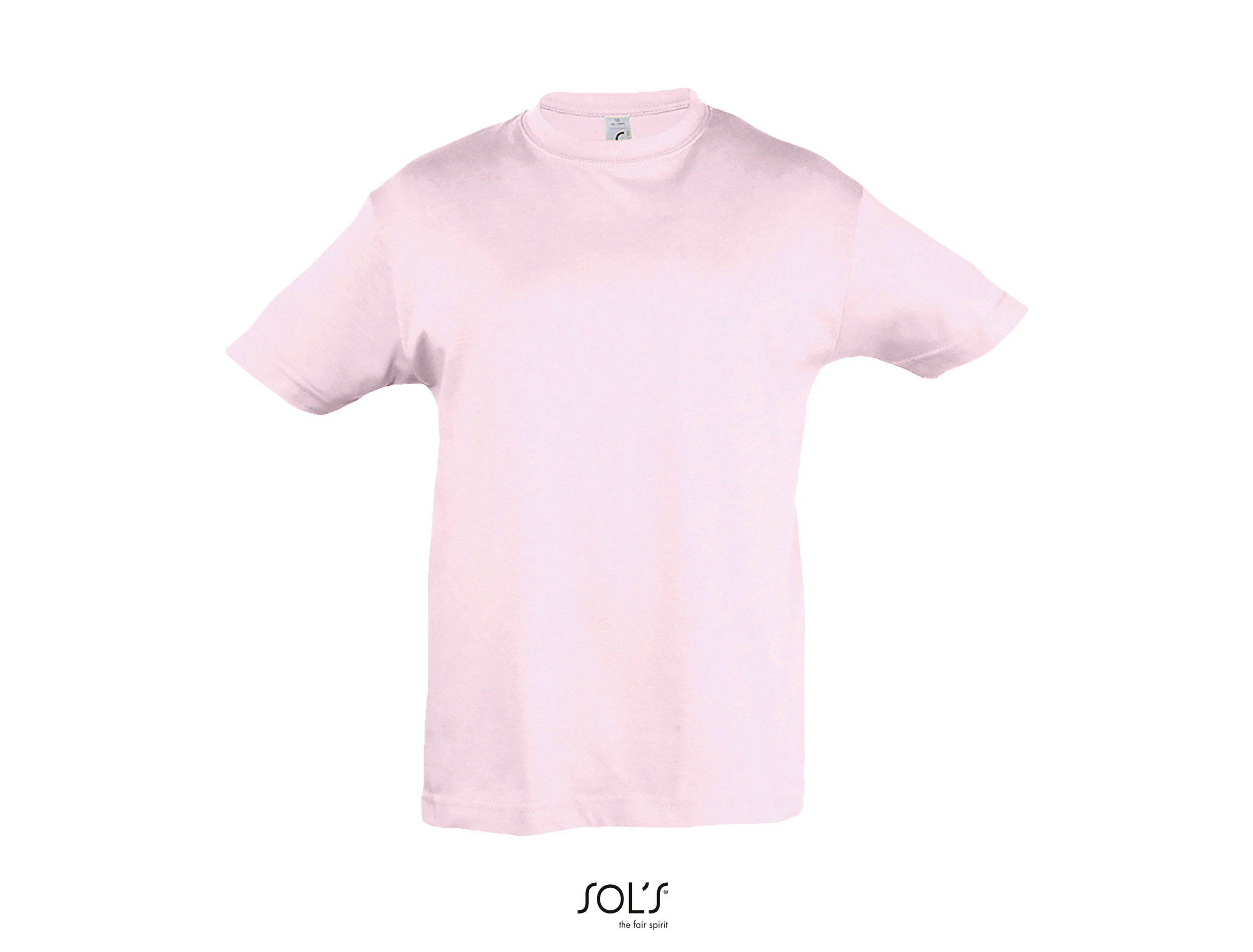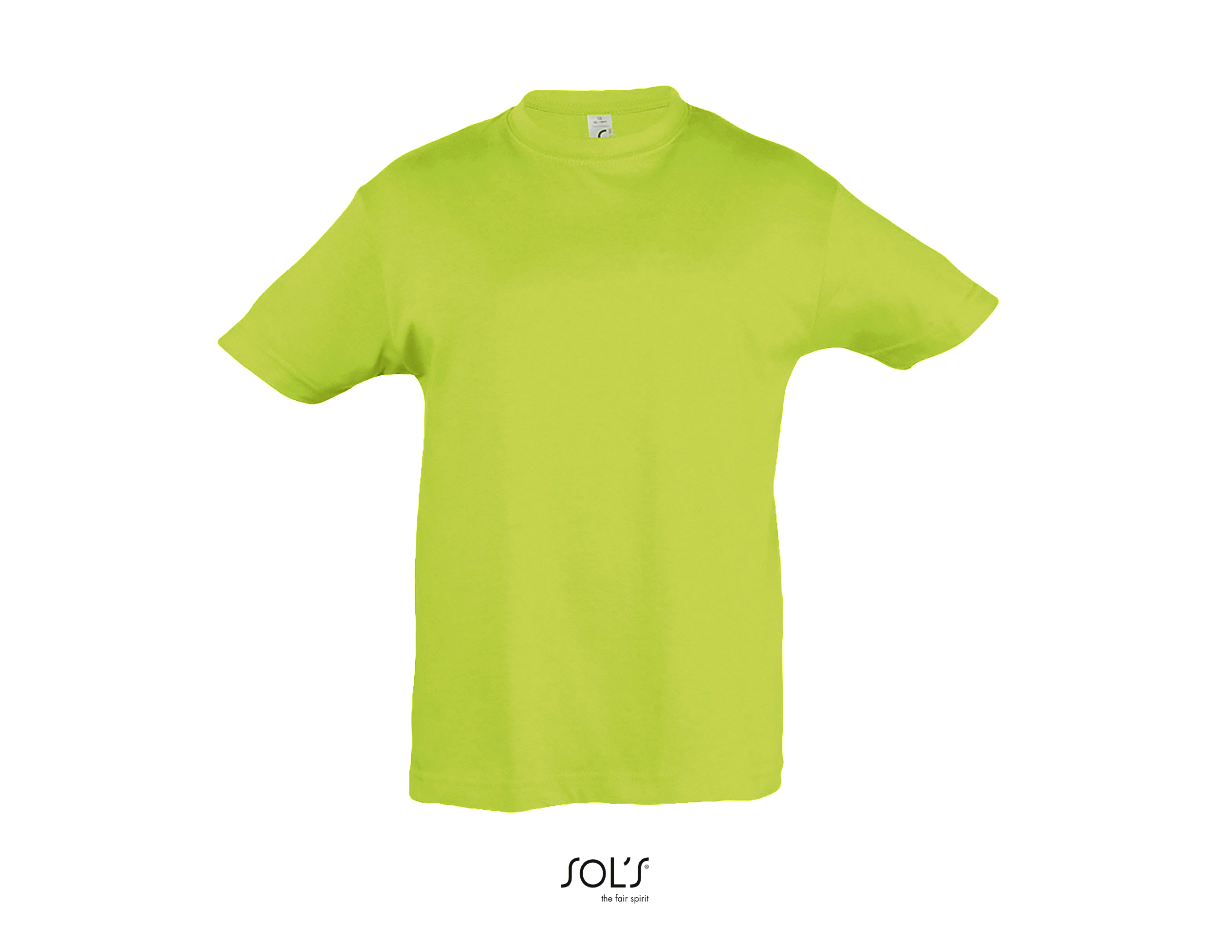 Nastro di rinforzo sul collo, girocollo con bordo a costina con elastan, maniche corte, tagliata e cucita nella taglia 2-4 anni, tubolare a partire da 6 anni.