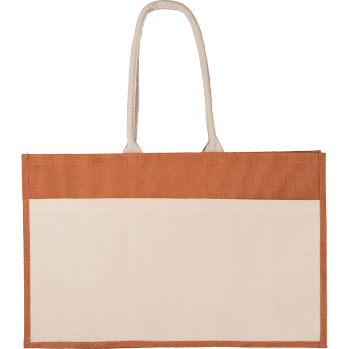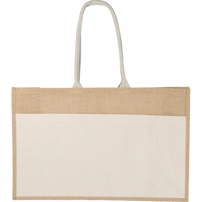 con ampia tasca esterna in cotone di colore natural con chiusura in velcro (56,5×28 cm), manici lunghi imbottiti.