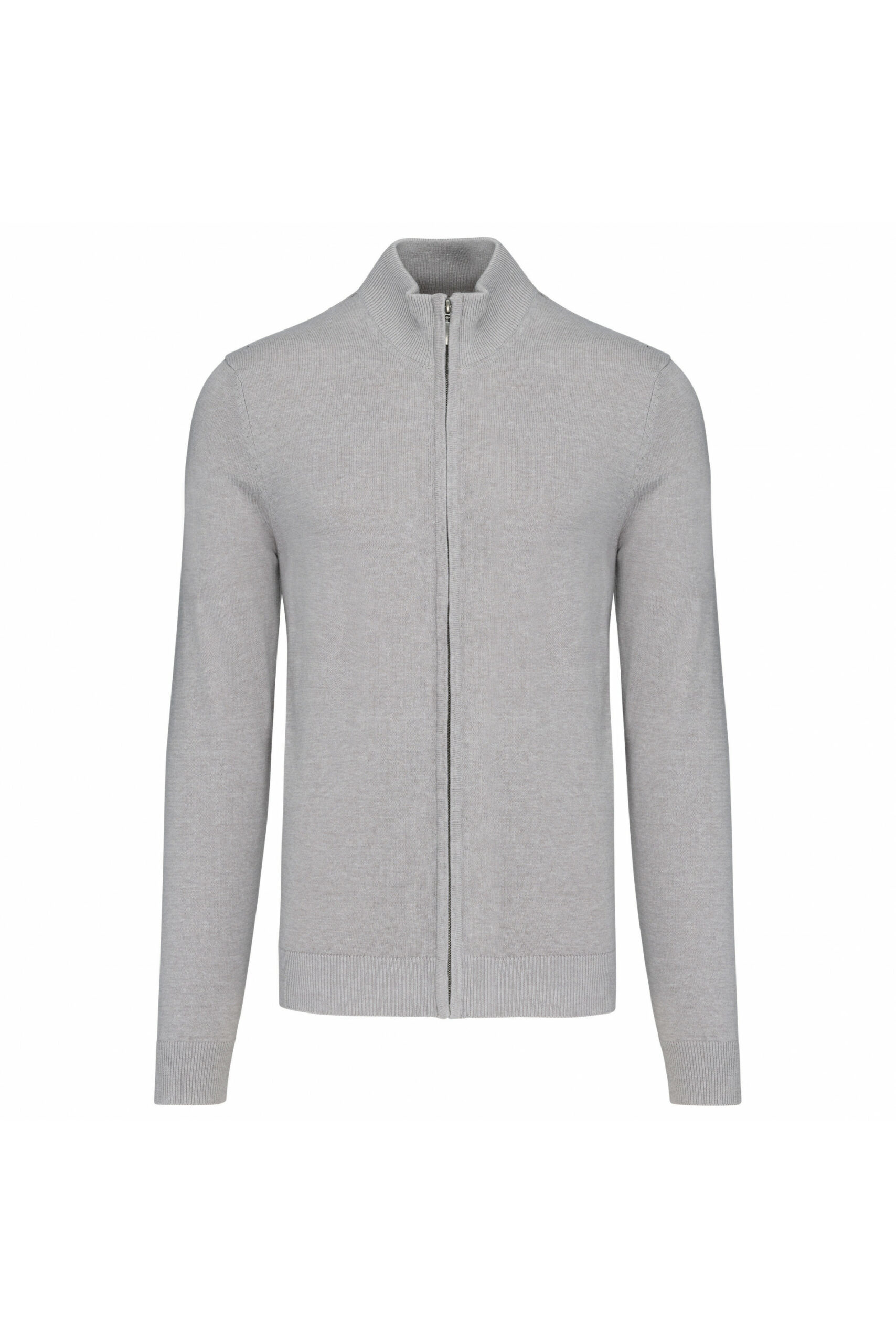 Modello sagomato. Collo alto doppio strato. Full zip frontale colore fumo. Nastrino al collo.