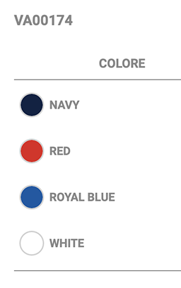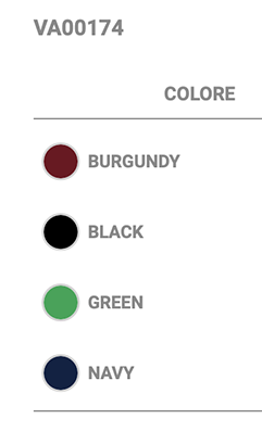 | Colori | Black, Burgundy, Green, Navy, Red, Royal Blue, White |