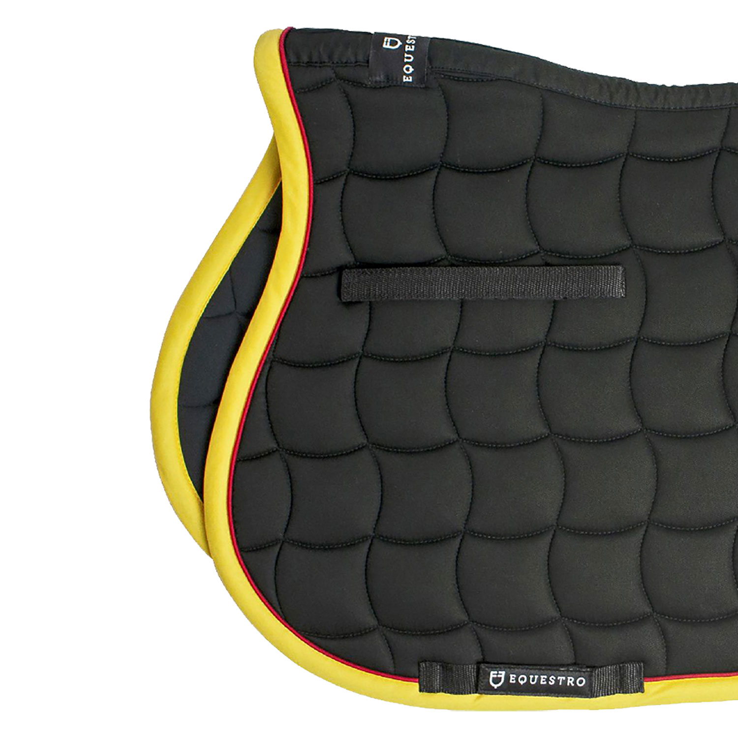Il sottosella è decorato con passamaneria a contrasto di vari colori e patch con logo e scritta Equestro sul garrese. Personalizzabile con ricamo.