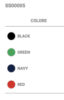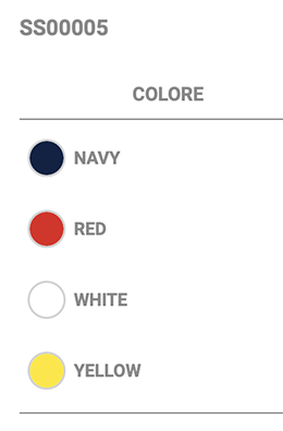 | Colori | Black, Green, Navy, Red, White, Yellow |
