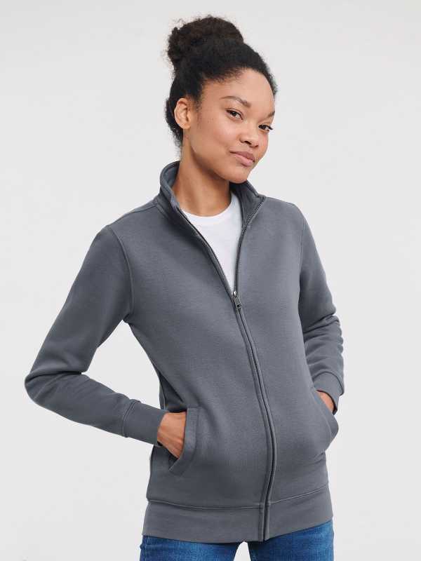 Tessuto esterno cotone 100% (tessuto a 3 strati). Felpa con zip da donna, spalle e maniche più strette, orli e polsini più ampi, tasca a filetto, zip in metallo YKK (argento antico), nastrino di rinforzo sul collo.