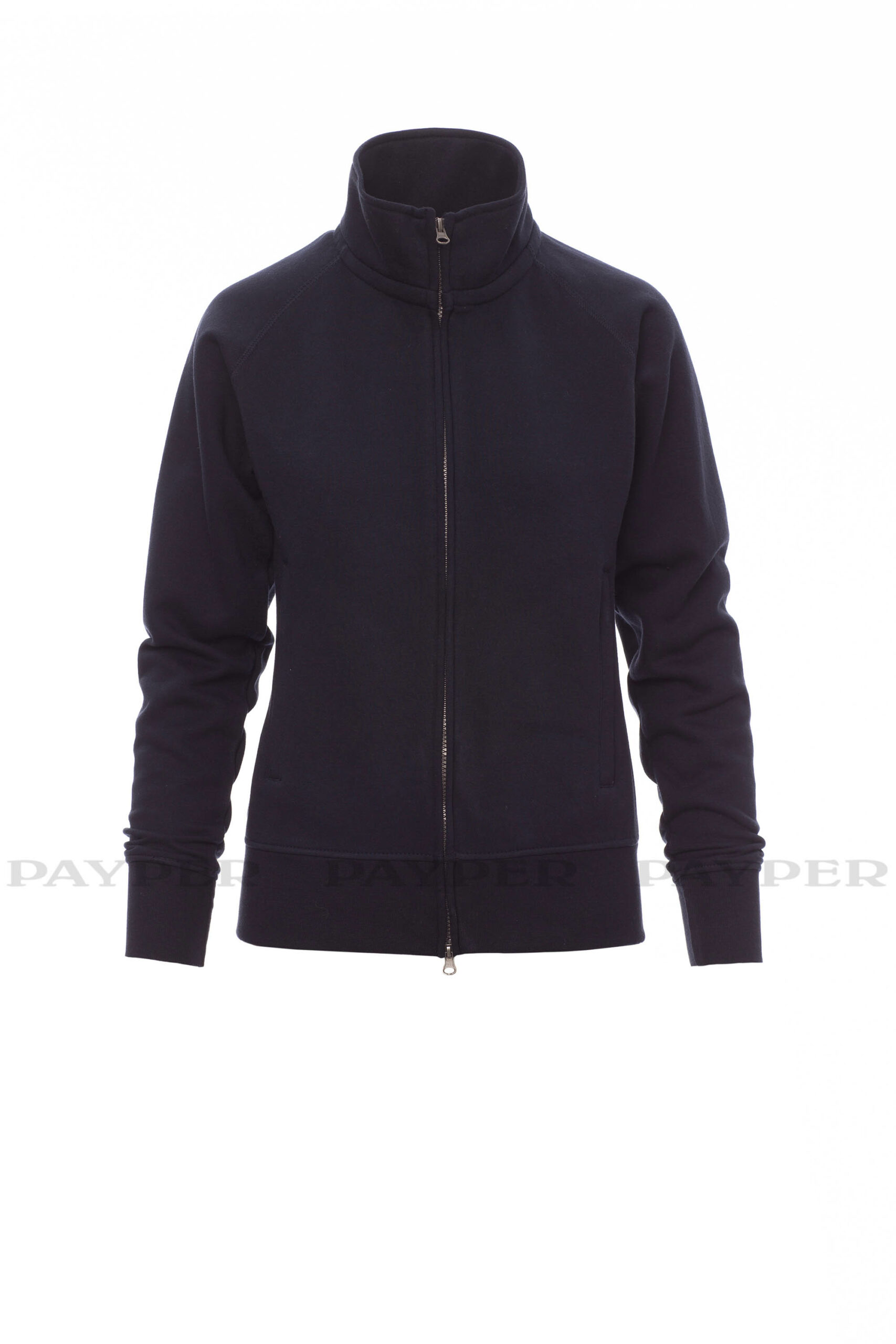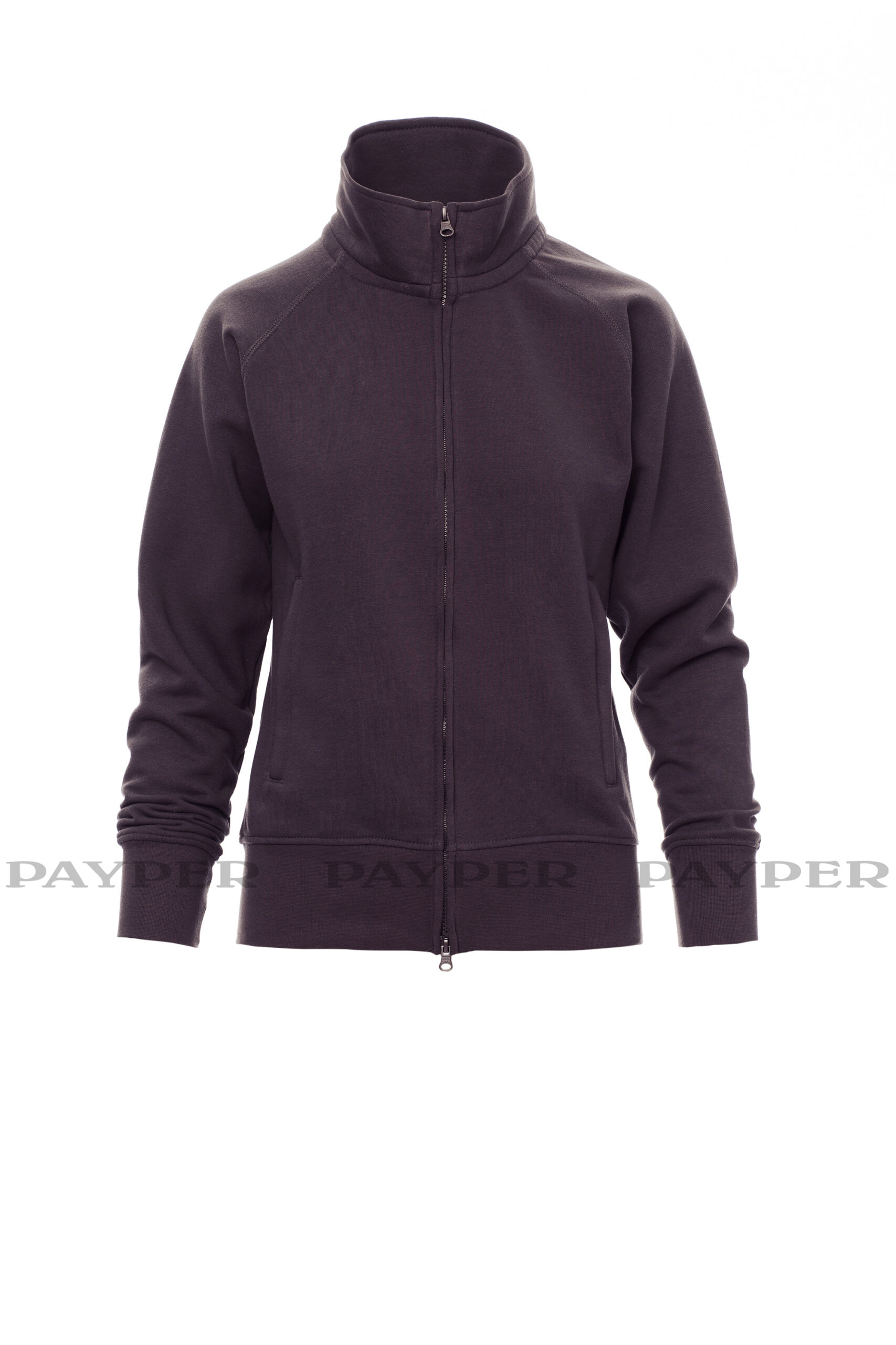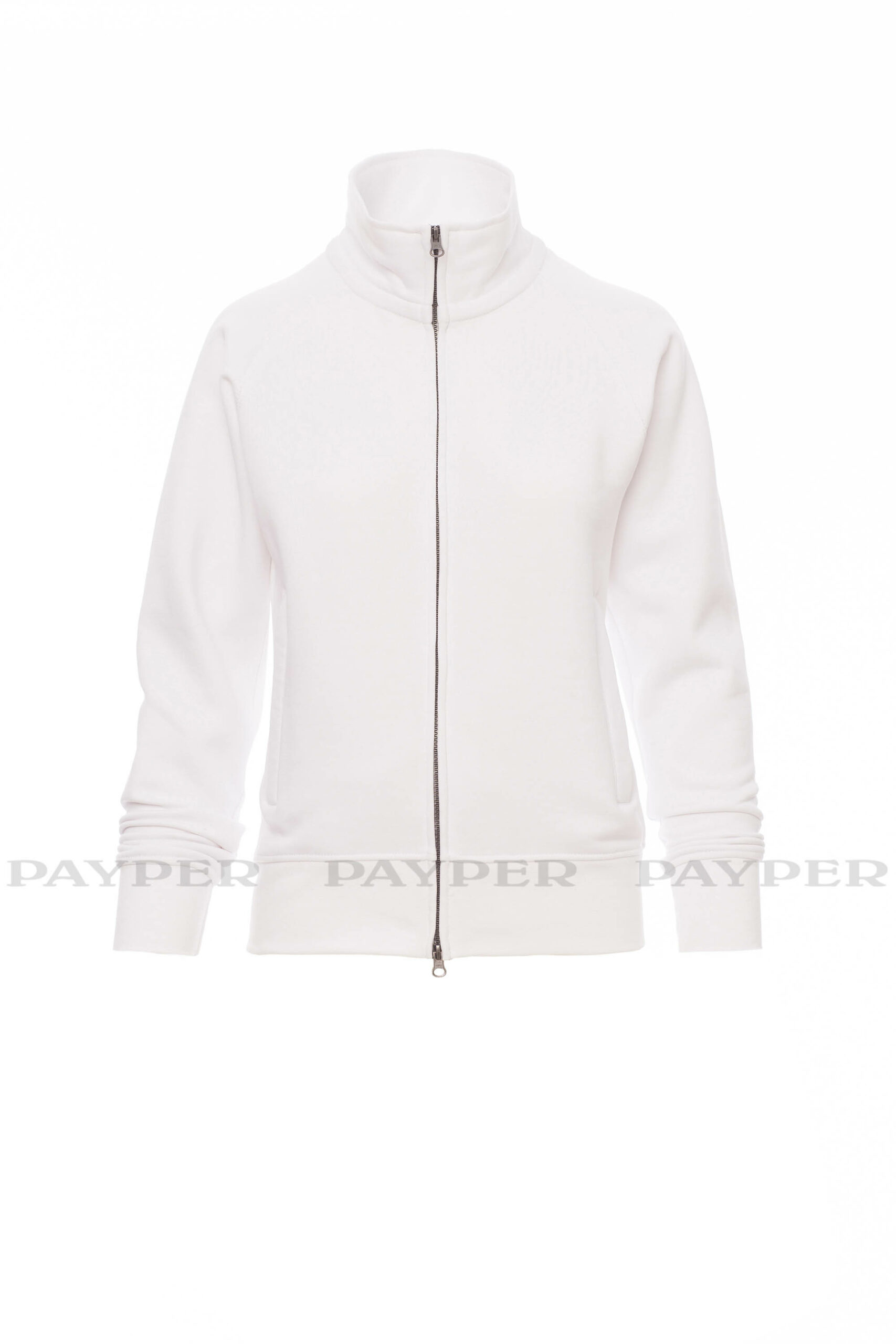 Zip intera SBS coperta, in plastica con doppio cursore in metallo, manica raglan, due tasche con zip coperte, polsini e vita in costina elasticizzata, cuciture rinforzate.