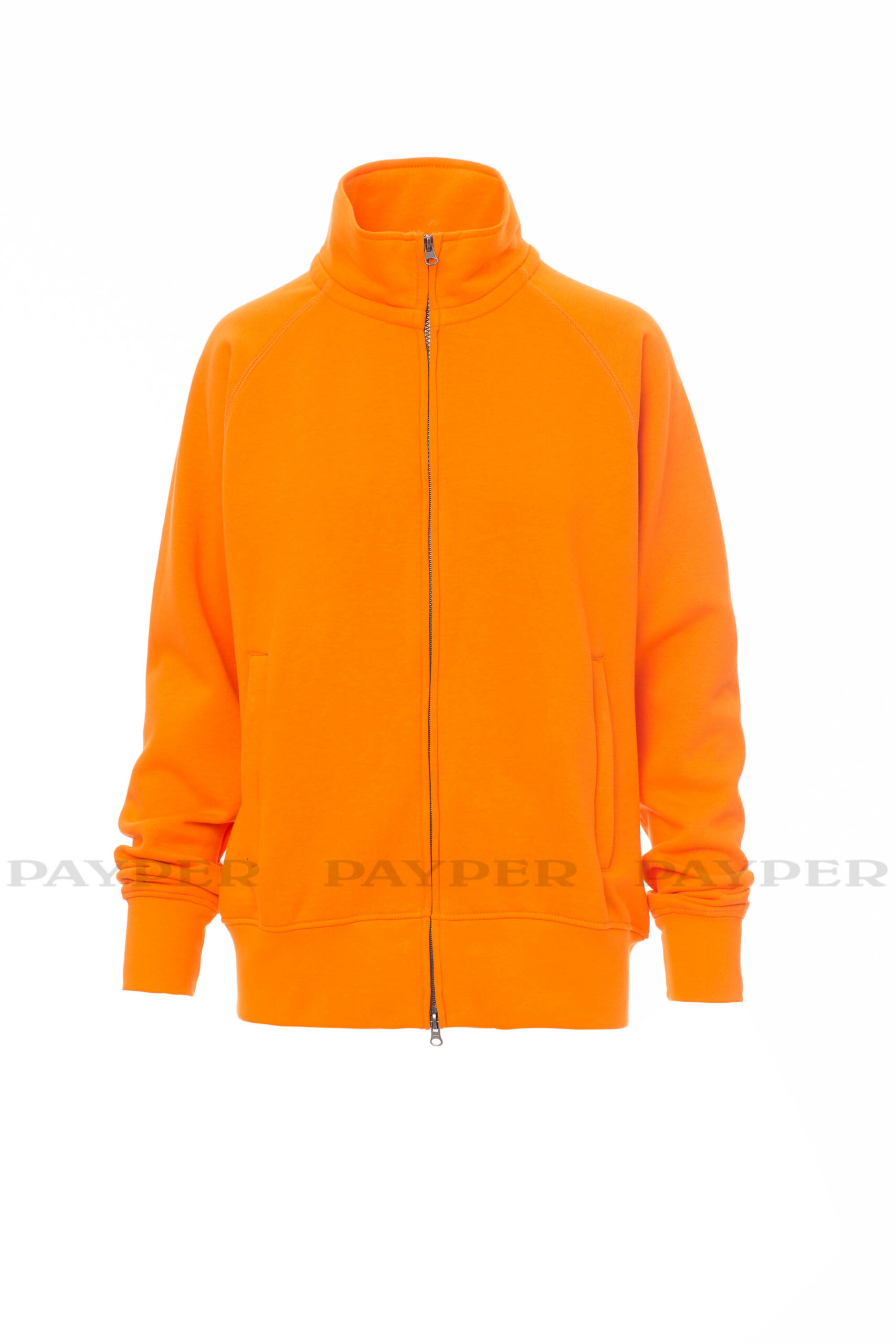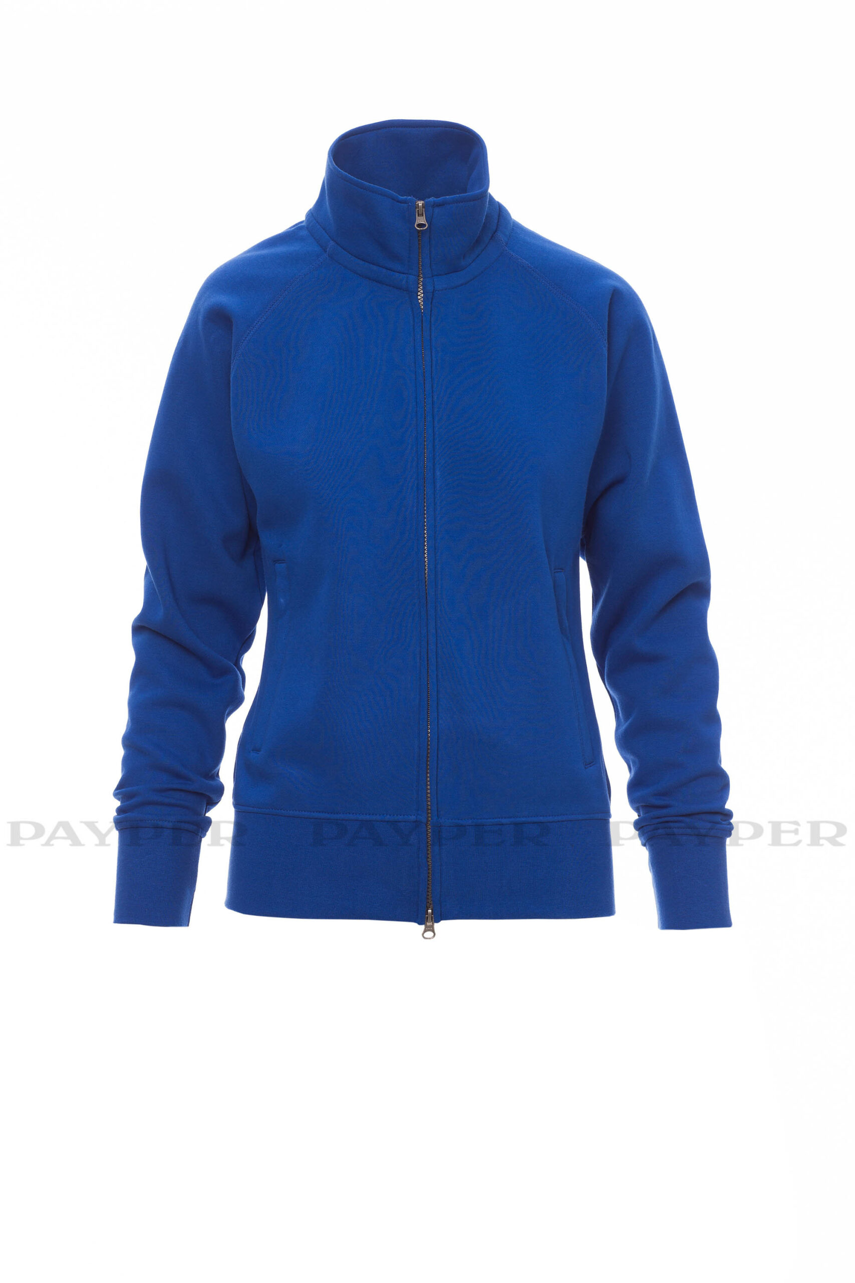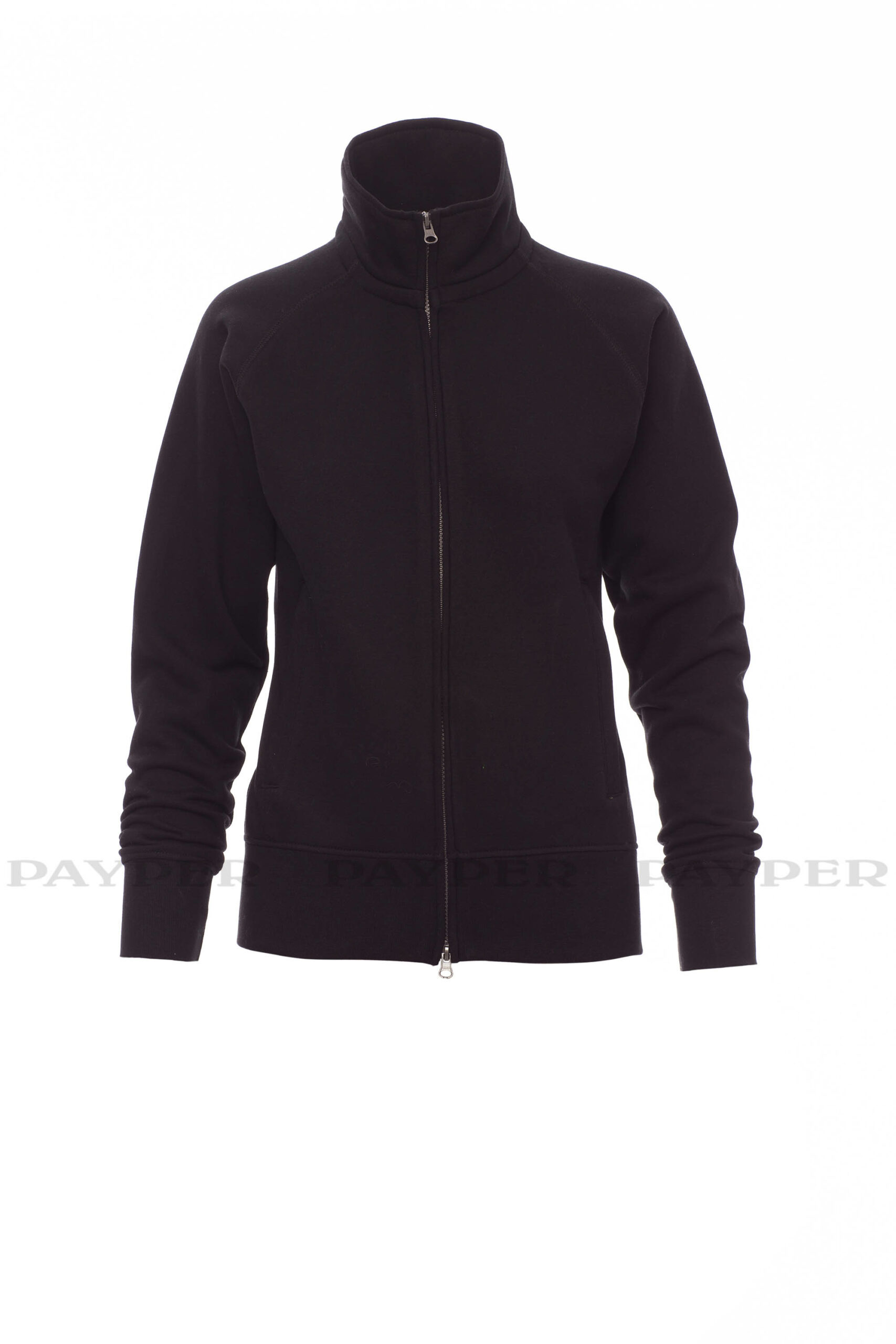 Zip intera SBS coperta, in plastica con doppio cursore in metallo, manica raglan, due tasche con zip coperte, polsini e vita in costina elasticizzata, cuciture rinforzate.