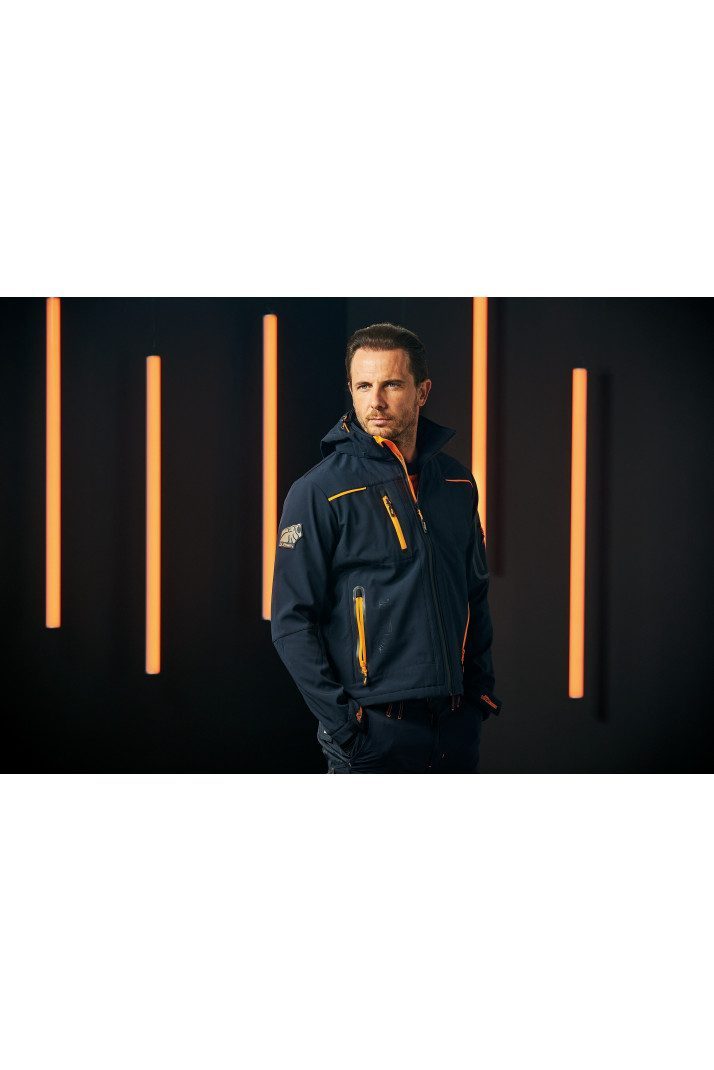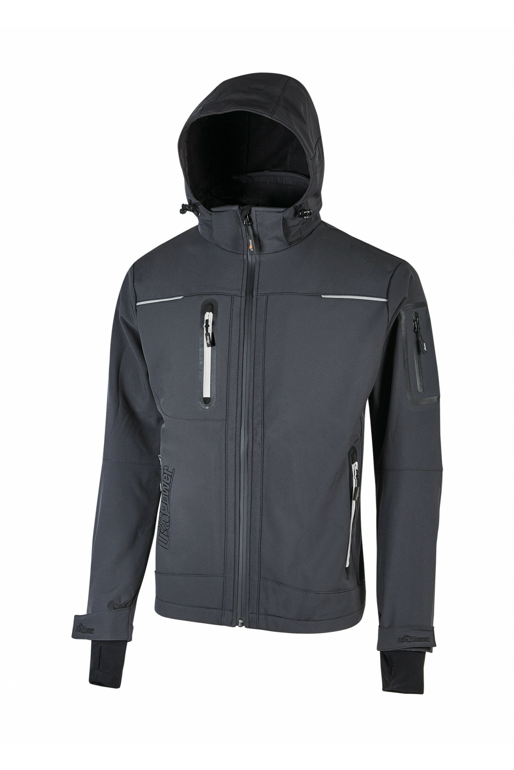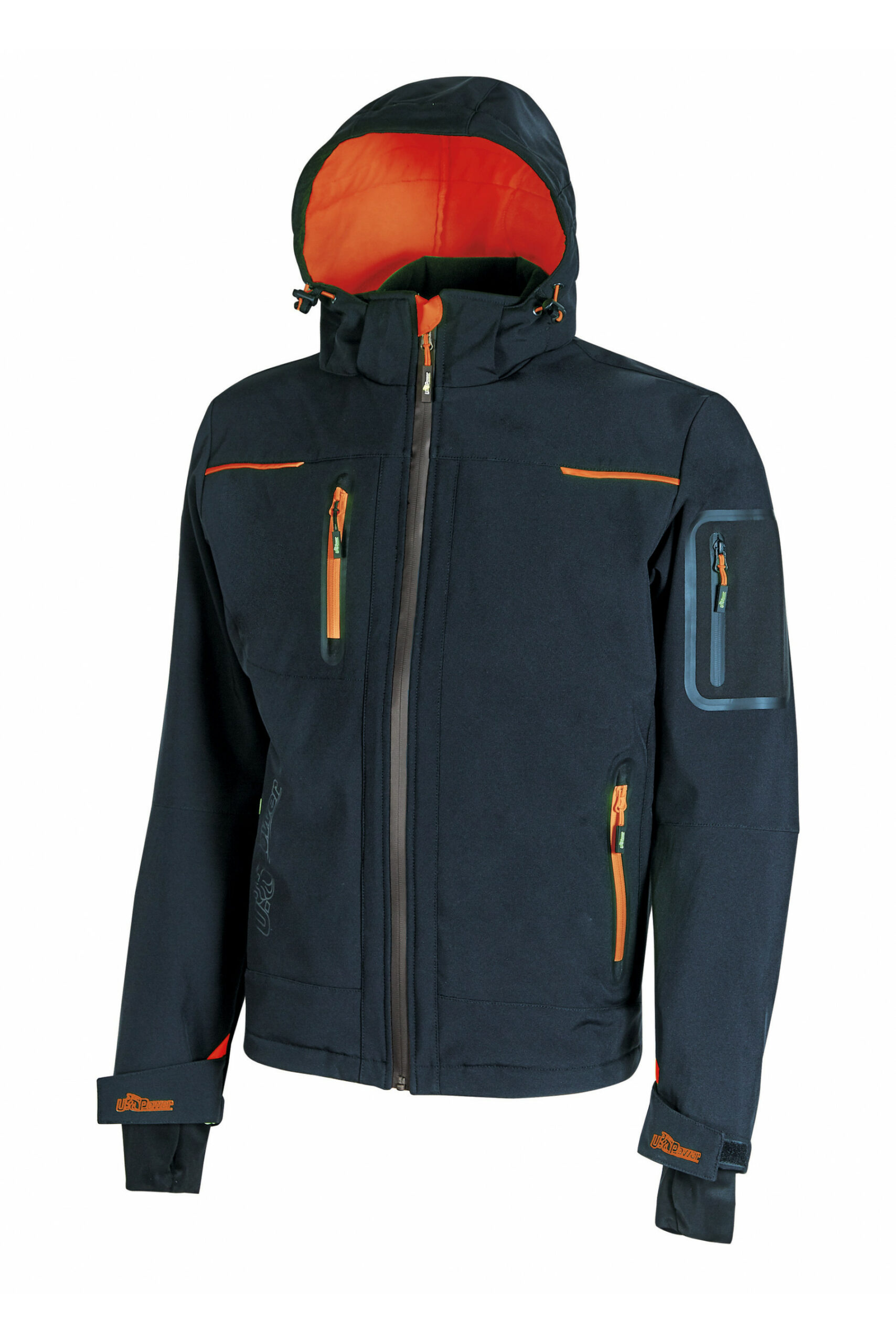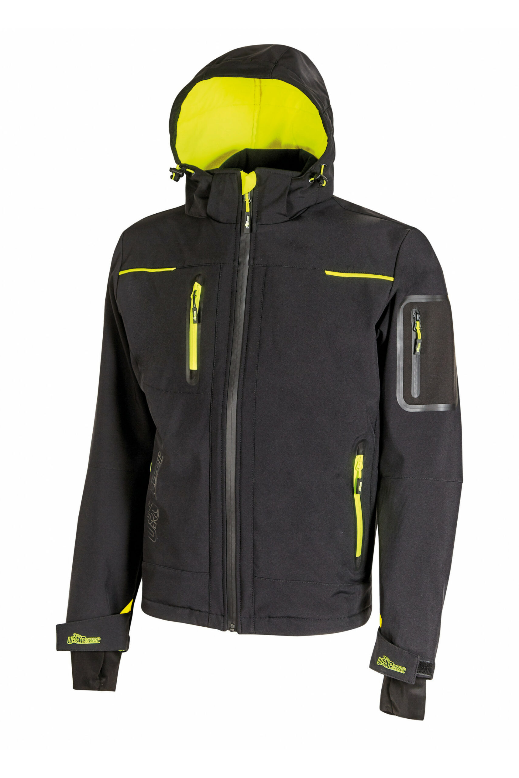 Adatto per l’esterno, grazie alla tecnologia impermeabile e antivento U-Tex. Pratico grazie alle numerose tasche.Pensato per adattarsi all’attività di chi indossa la giacca. Giacca in Softshell con membrana U-Tex che rende il tessuto impermeabile, traspirante e antivento. Giacca molto comoda e resistente con una fodera interna in morbido micro-fleece fluo. Chiusura centrale con zip impermeabile. Maniche preformate per vestibilità ottimale, cappuccio regolabile e staccabile, polsini regolabili con velcro e polsino antivento elasticizzato con foro passa-pollice. Dotato di due tasche frontali chiuse con zip fluo e coulisse antimpigliamento regolabile all’interno. Una tasca porta cellulare sul petto con tecnologia Free Sound chiusa con zip fluo. Due ampie tasche interne. Tasca supplementare termosaldata su manica sinistra. Fondo sagomato. Nastro reflex su colletto nella parte posteriore. Logo U-Power tono su tono.