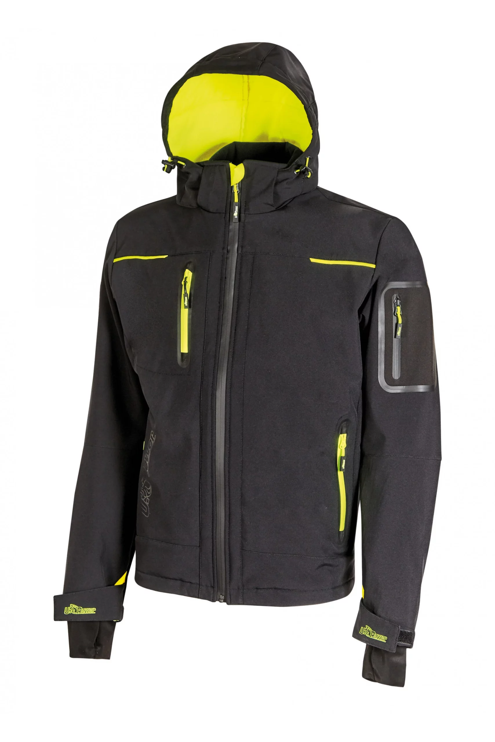 Adatto per l’esterno, grazie alla tecnologia impermeabile e antivento U-Tex. Pratico grazie alle numerose tasche. Pensato per adattarsi all’attività di chi indossa la giacca.Giacca in Softshell con membrana U-Tex che rende il tessuto impermeabile, traspirante e antivento. Giacca molto comoda e resistente con una fodera interna in morbido micro-fleece fluo. Chiusura centrale con zip impermeabile. Maniche preformate per vestibilità ottimale, cappuccio regolabile e staccabile, polsini regolabili con velcro e polsino antivento elasticizzato con foro passa-pollice. Dotato di due tasche frontali chiuse con zip fluo e coulisse antimpigliamento regolabile all’interno. Una tasca porta cellulare sul petto con tecnologia Free Sound chiusa con zip fluo. Due ampie tasche interne. Tasca supplementare termosaldata su manica sinistra. Fondo sagomato. Nastro reflex su colletto nella parte posteriore. Logo U-Power tono su tono.