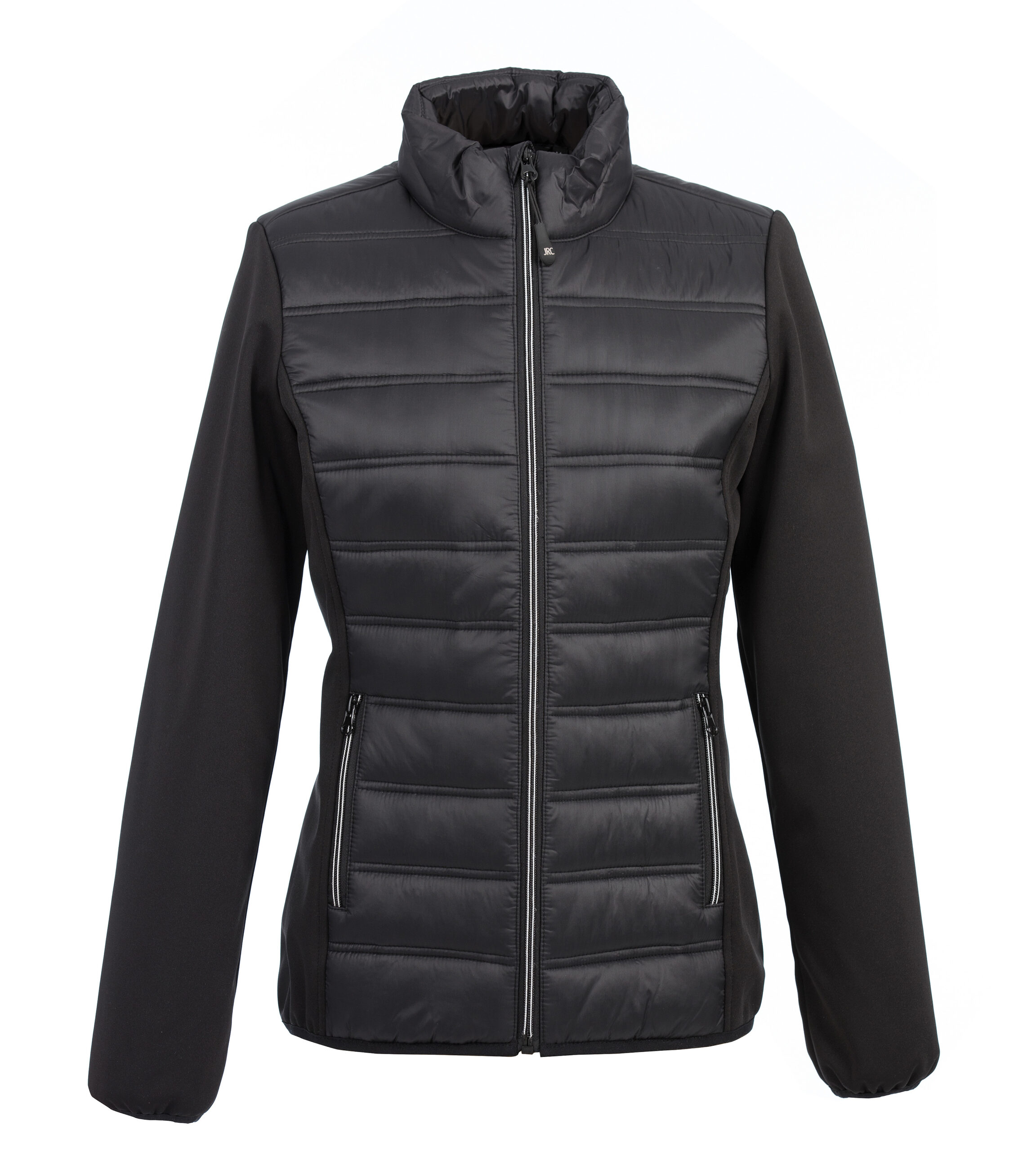 Imbottitura in soffice poliestere (effetto piuma),fianchi e maniche: softshell tre strati con membrana TPU,con interno in pile antipilling. Impermeabilità 3000 mm/H2O,traspirabilità 1000 g/M²/24h. Cerniere con profilatura in contrasto.due tasche con zip,due tasche interne. Tessuto elastico ai polsi e al fondo.