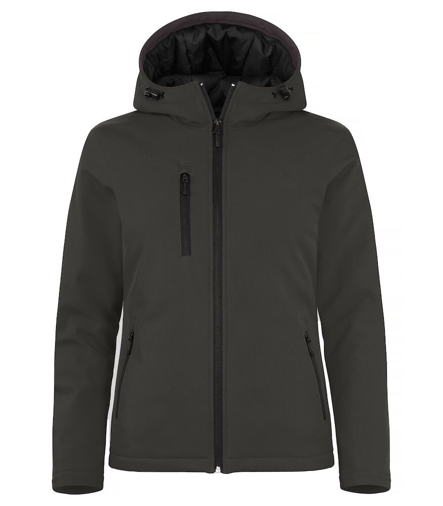 Giubbotto donna softshell imbottito con cappuccio. Tessuto esterno laminato a tre strati morbido ed elasticizzato. Cappuccio fisso con coulisse elastica. Tre tasche esterne con zip. Taschino interno. Fodera con zip nascosta per agevolare stampe e ricami.