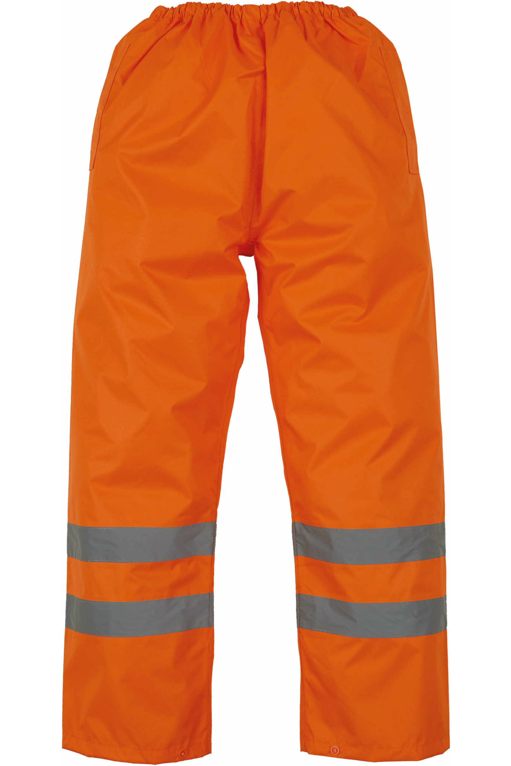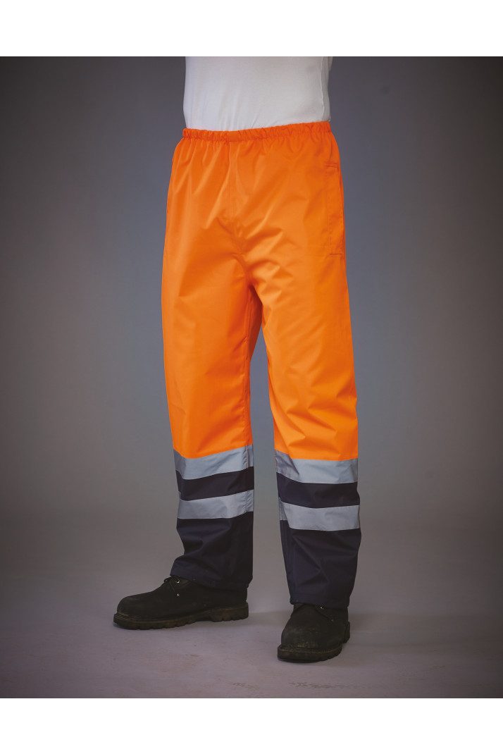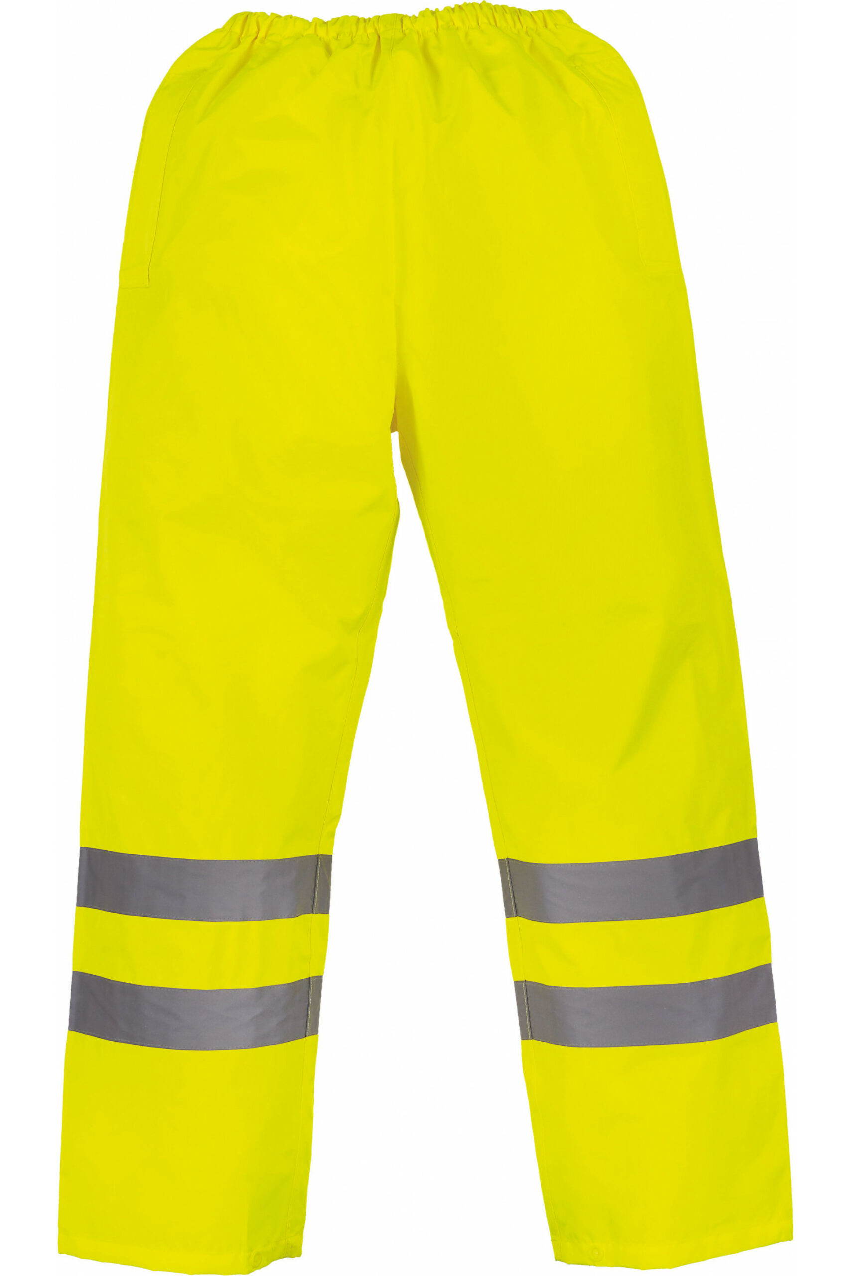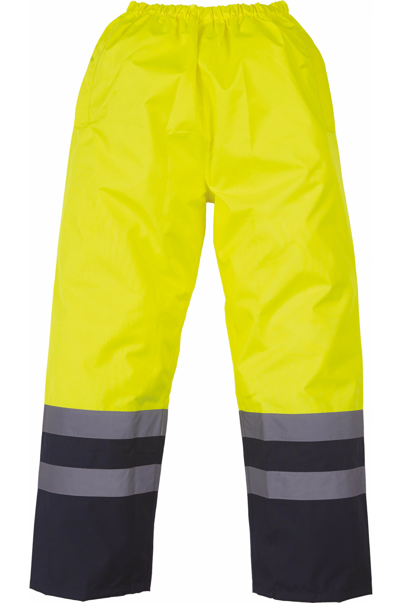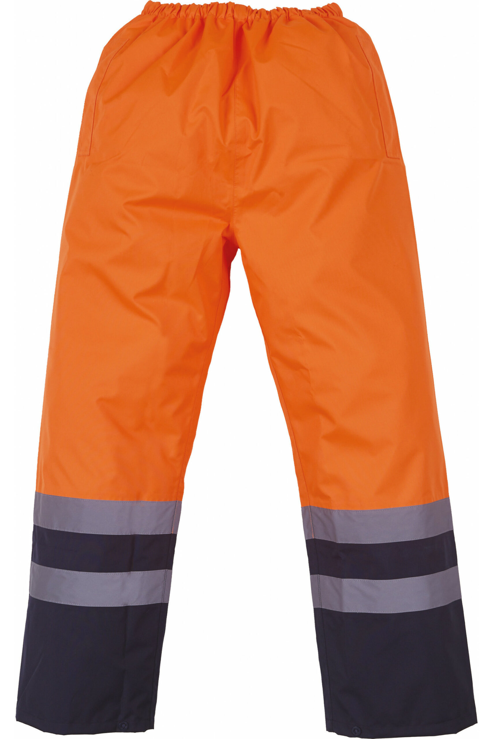 2 fasce larghe e riflettenti a fondo gamba. Girovita elasticizzato. Automatici di regolazione a fondo gamba. Rivestimento Oxford PU. Impermeabile. Due fasce riflettenti larghe 5 cm a fondo gamba. Girovita elasticizzato. Automatici di regolazione sul fondo. Cuciture cucite e incollate. Conformi alle norme EN ISO20471:2013 Classe 1 e EN343 relative alla protezione contro le intemperie: unicamente Hi-Vis Yellow, Hi Vis Yellow/Navy, Hi Vis Orange e Hi Vis Orange/Navy. Hi Vis Orange e Hi Vis Orange/Navy sempre conformi alla norma GO/RT 3279.