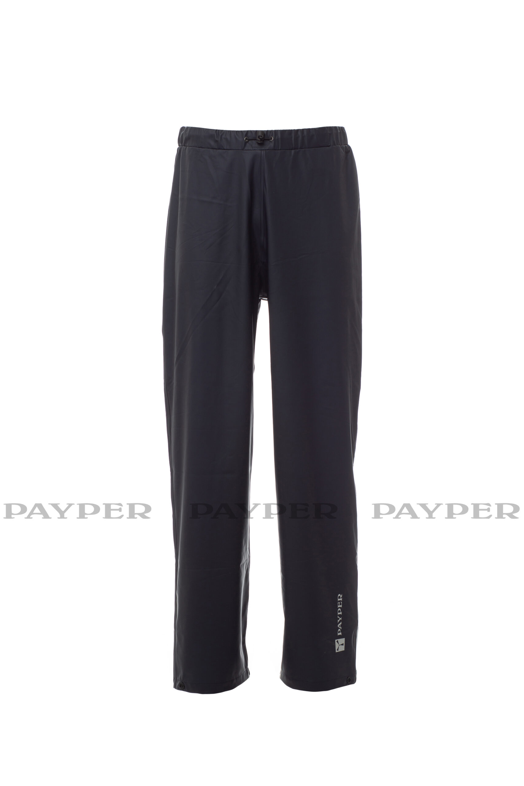 Pantalone antipioggia, coulisse ed elastico in vita, fonda gamba regolabile con bottone automatico, cuciture termosaldate.