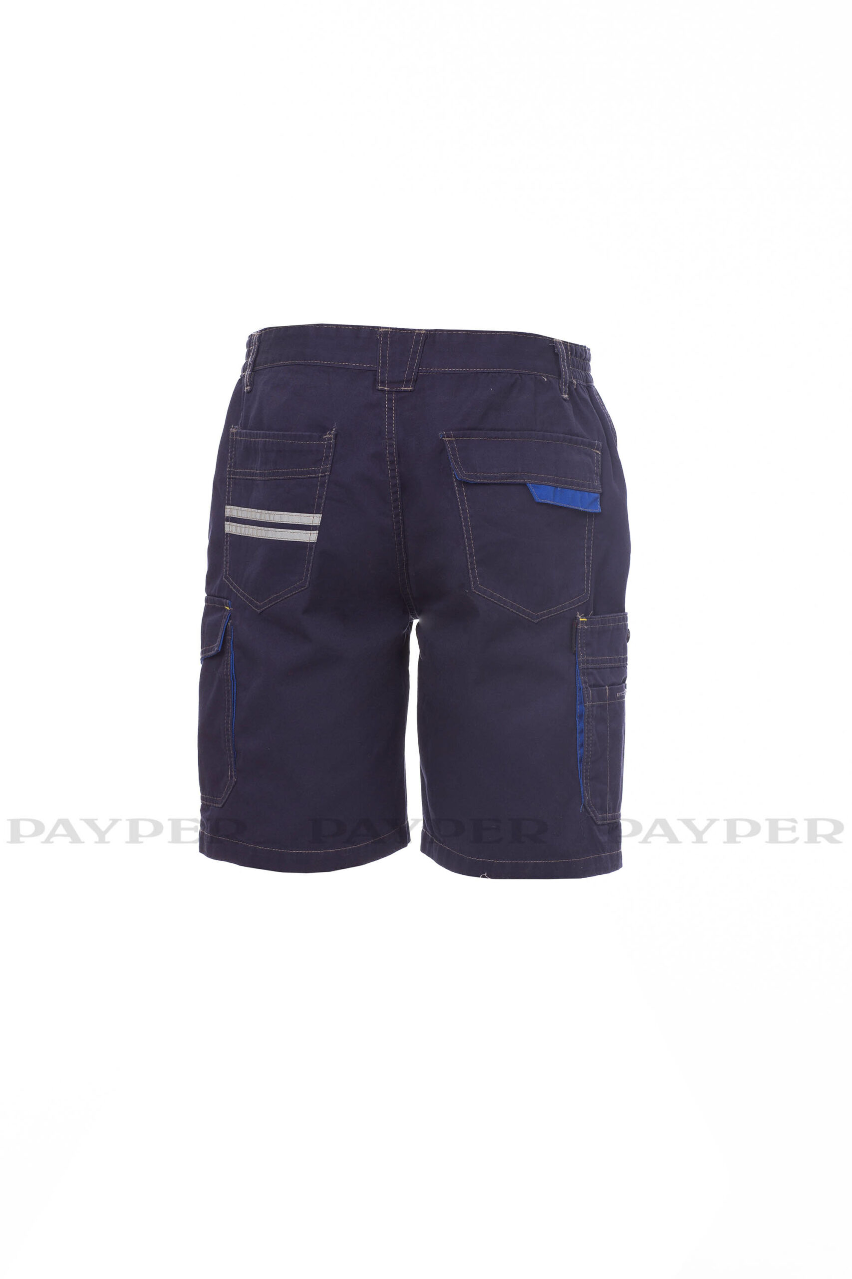 Bermuda uomo, elastici laterali e passanti in vita, chiusura con zip e bottone in metallo, tre tasche anteriori a taglio jeans, una tasca laterale LOCK SYSTEM e una tasca con zip, una tasca multifunzione, due tasche posteriori una aperta e una con patta e velcro. Inserti ed impuntare a contrasto, bande reflex su tasca posteriore.