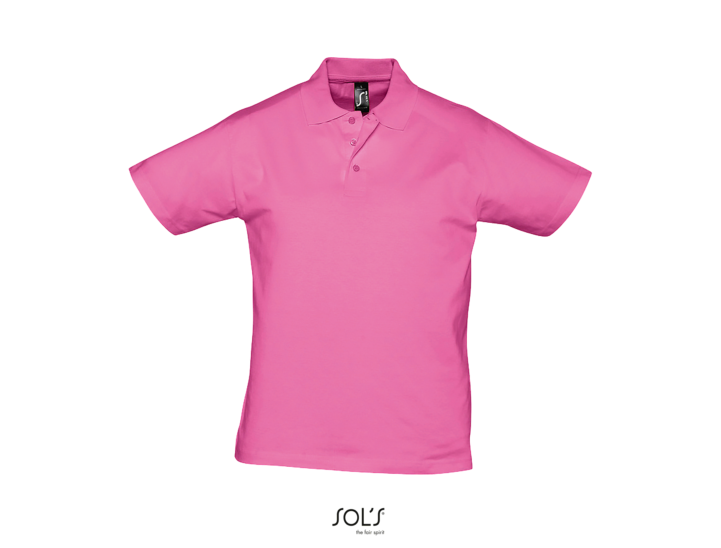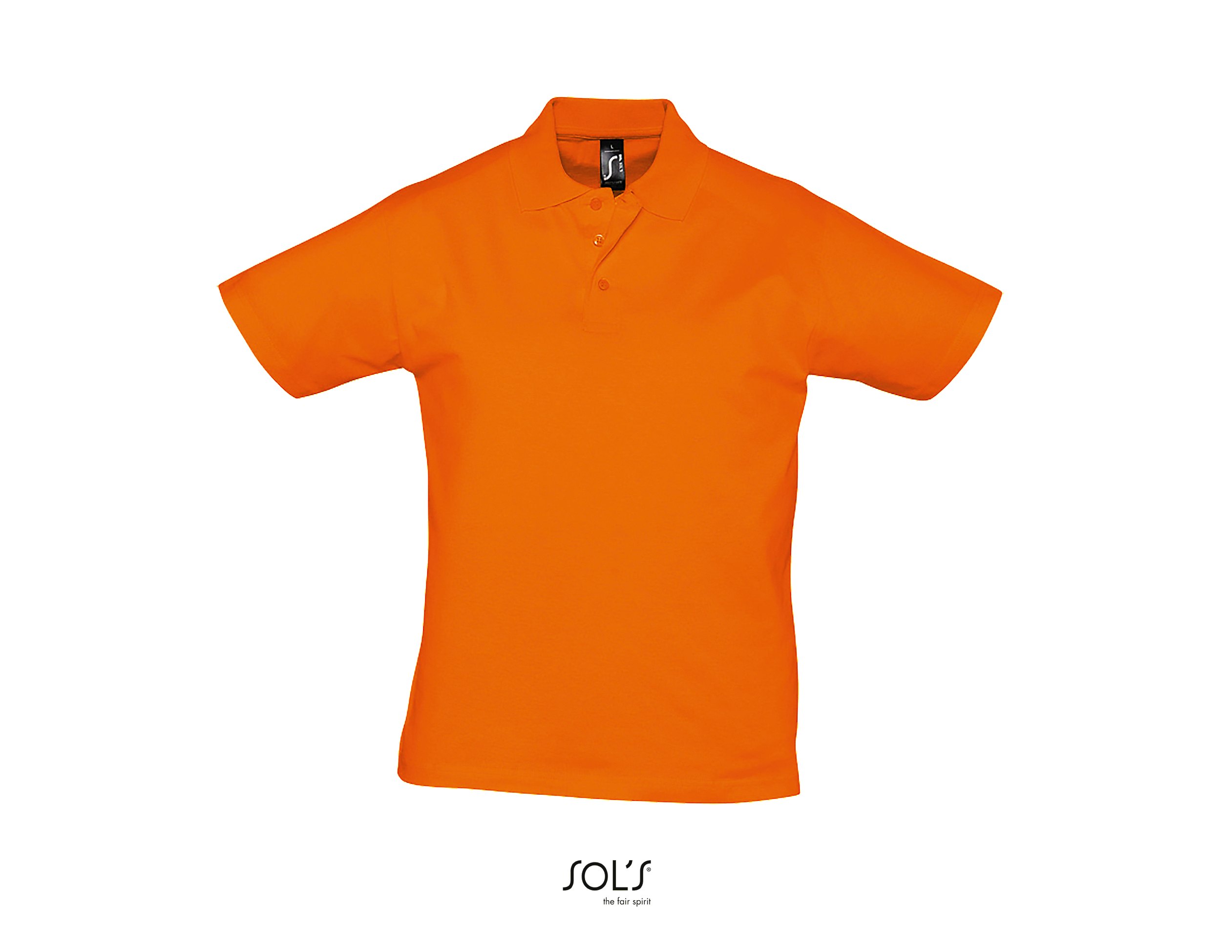 Nastro di rinforzo sul collo, collo a costina, maniche corte, 3 bottoni in tinta, bottone di ricambio cucito all’interno. Una polo entry-level, in jersey liscio, ideale per la stampa serigrafica o il transfert.