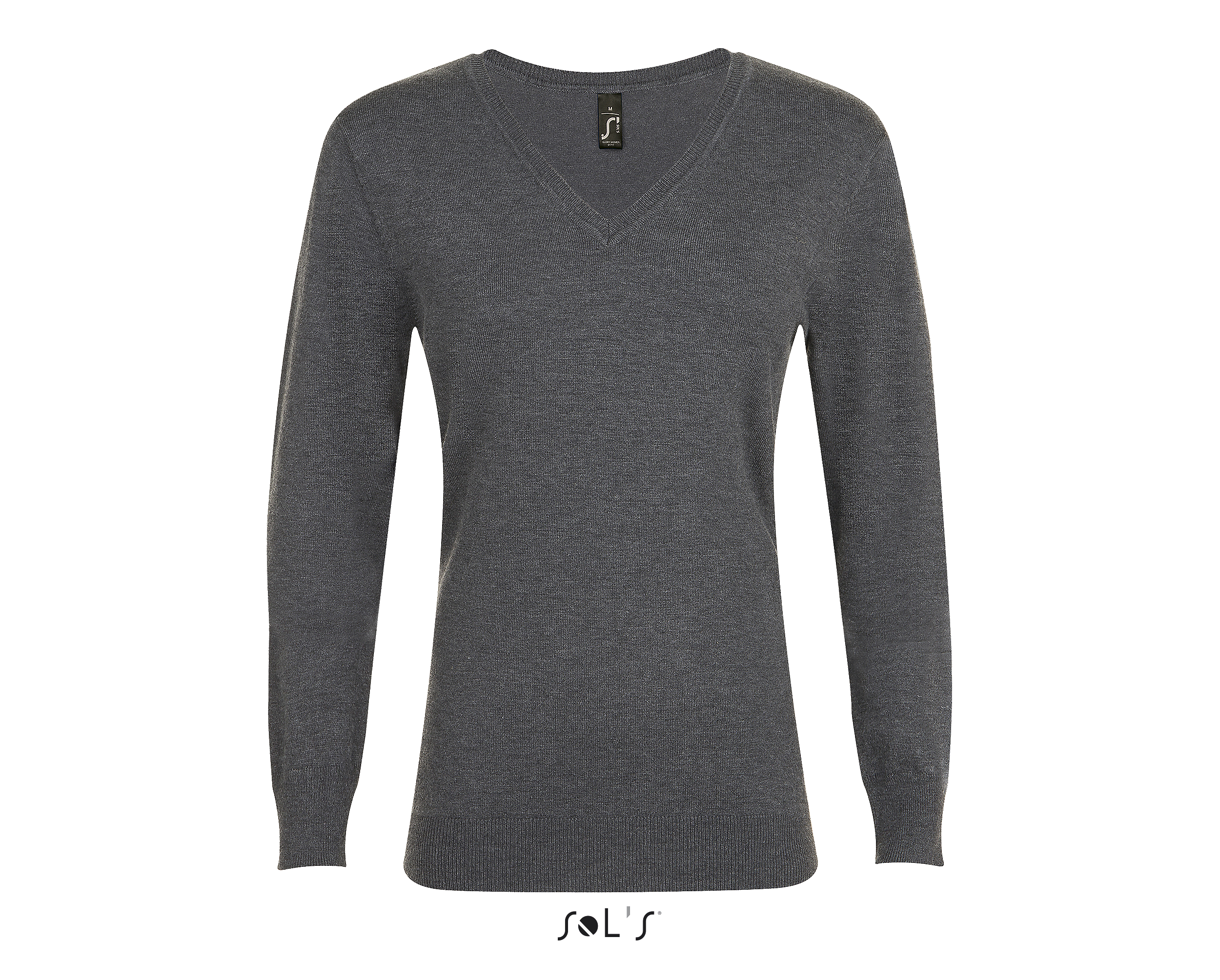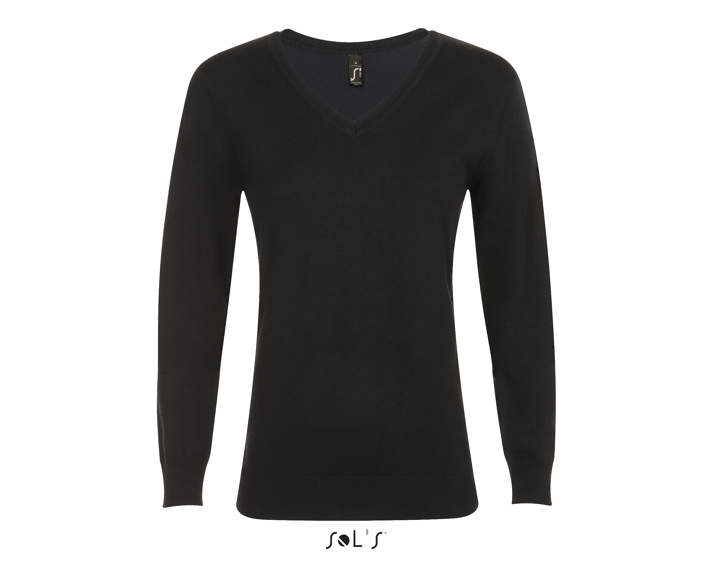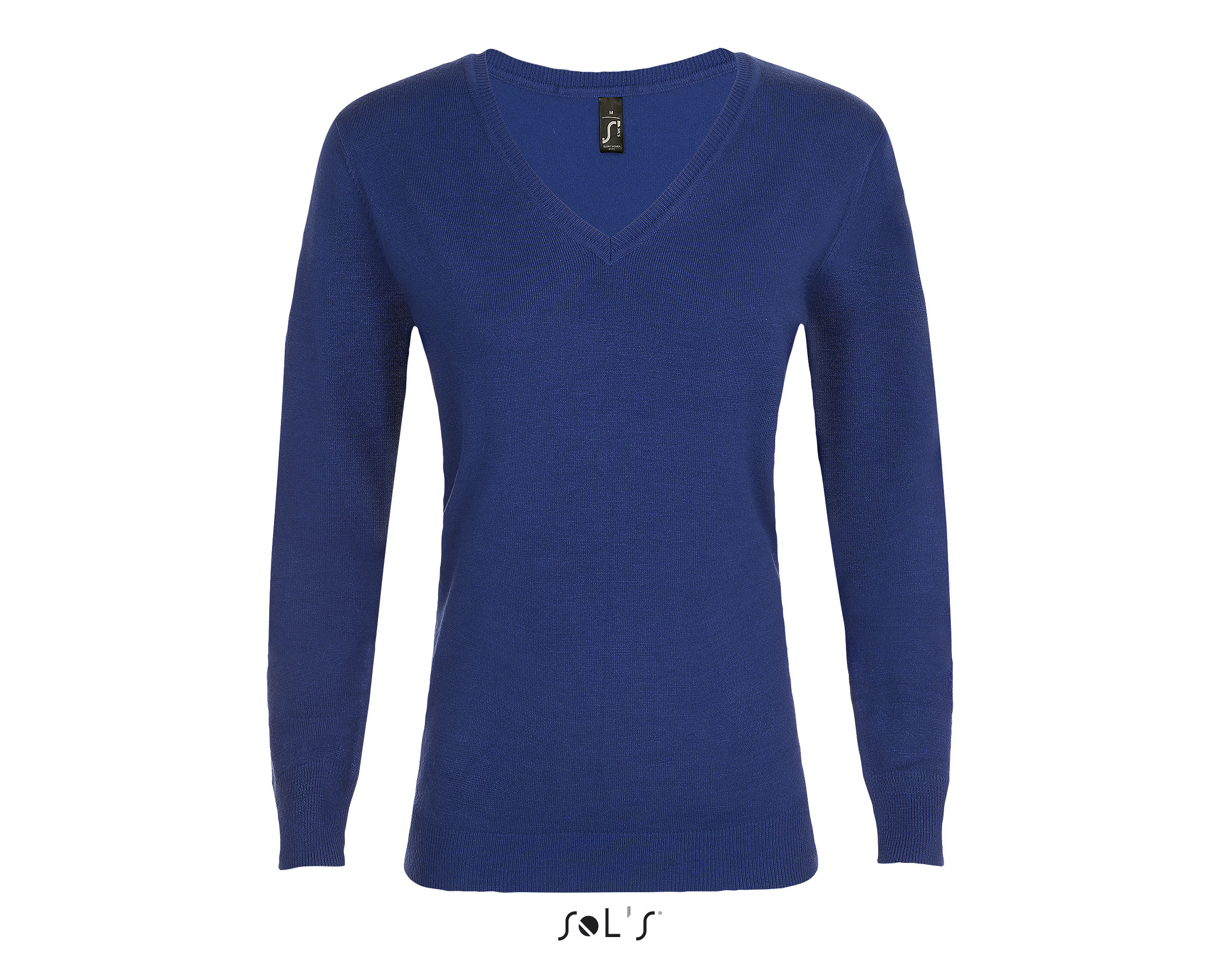 Scollo a V, punto vita sfiancato, polsini e fondo del capo con elastan e bordo a costina 1x, maniche scalvate.