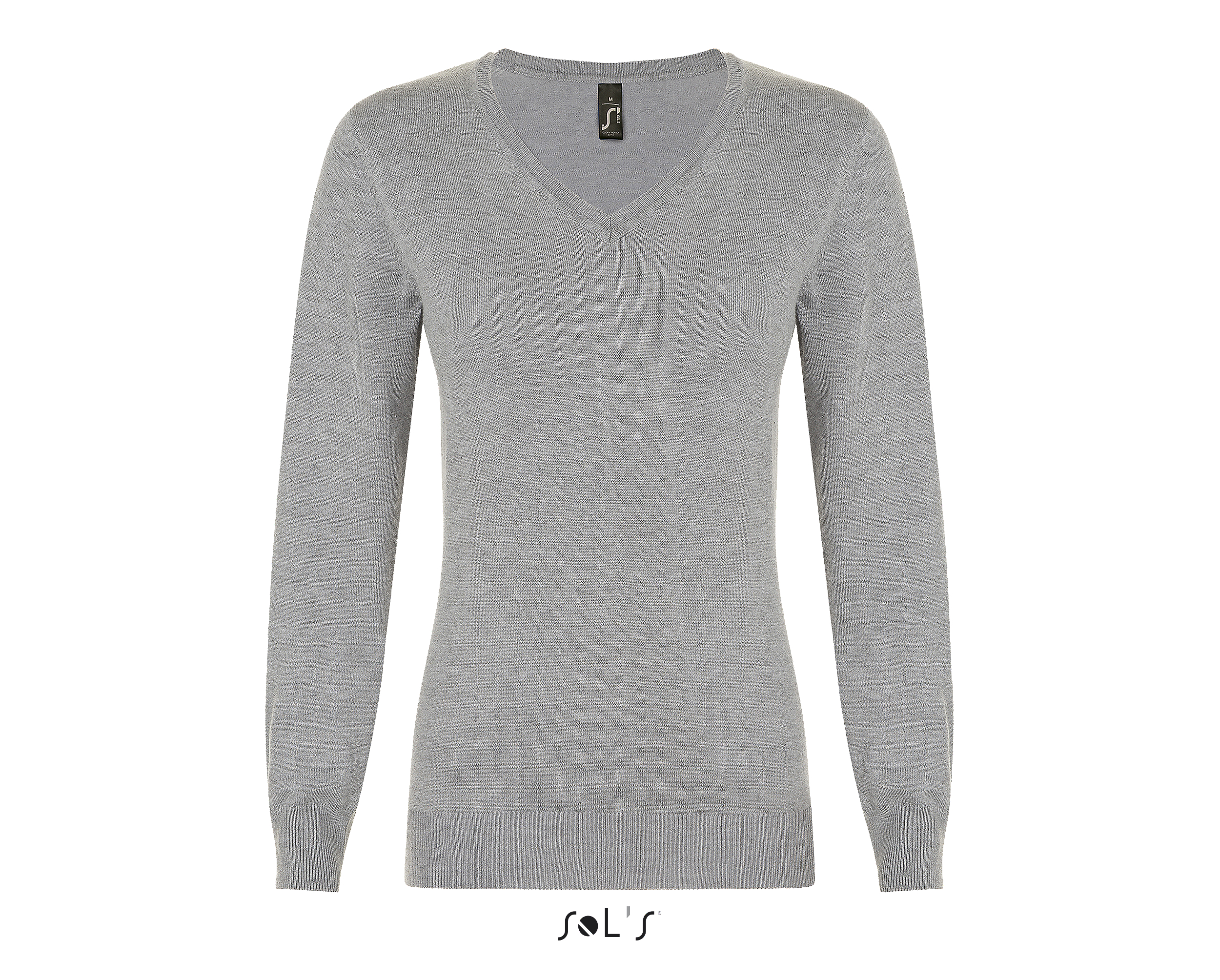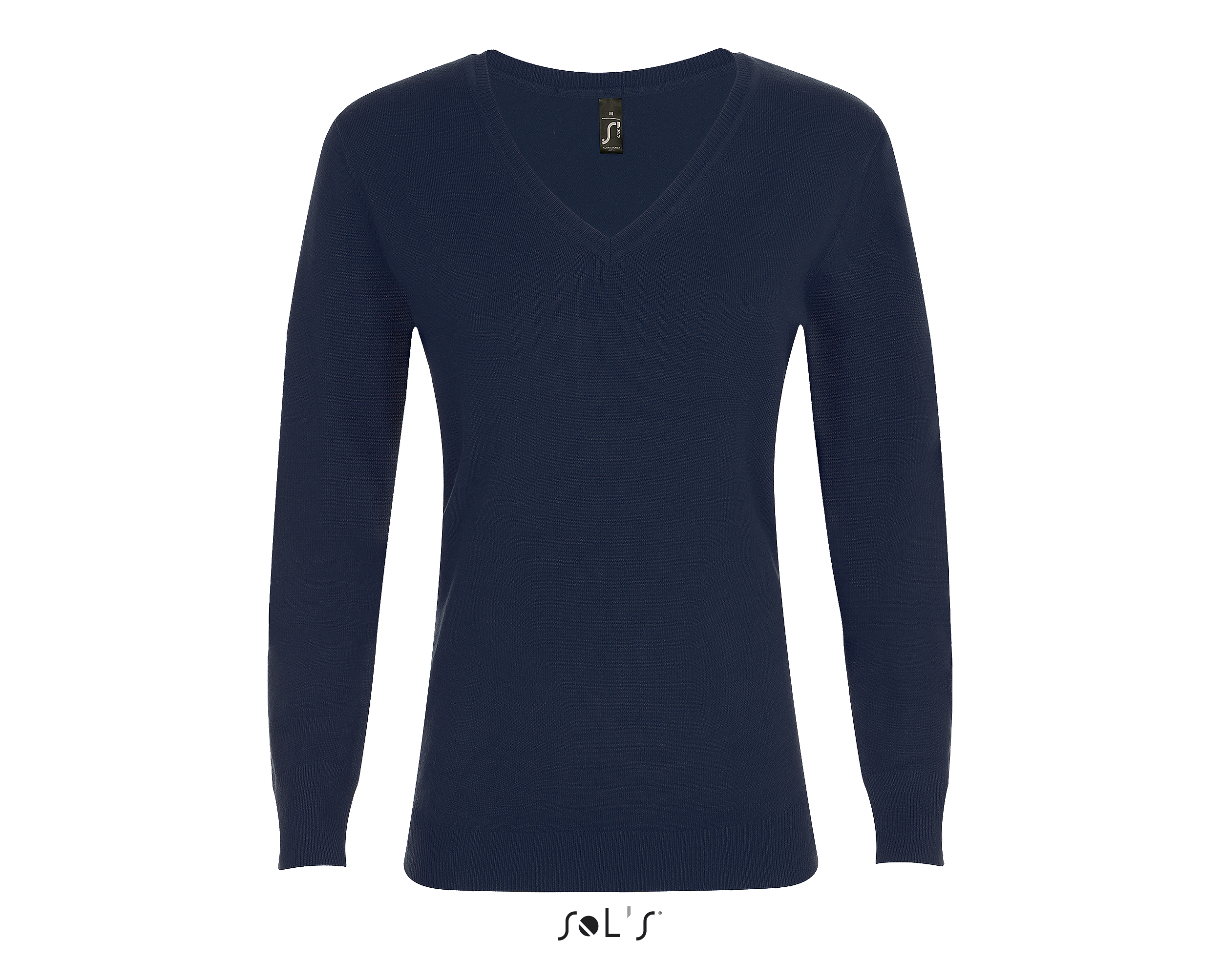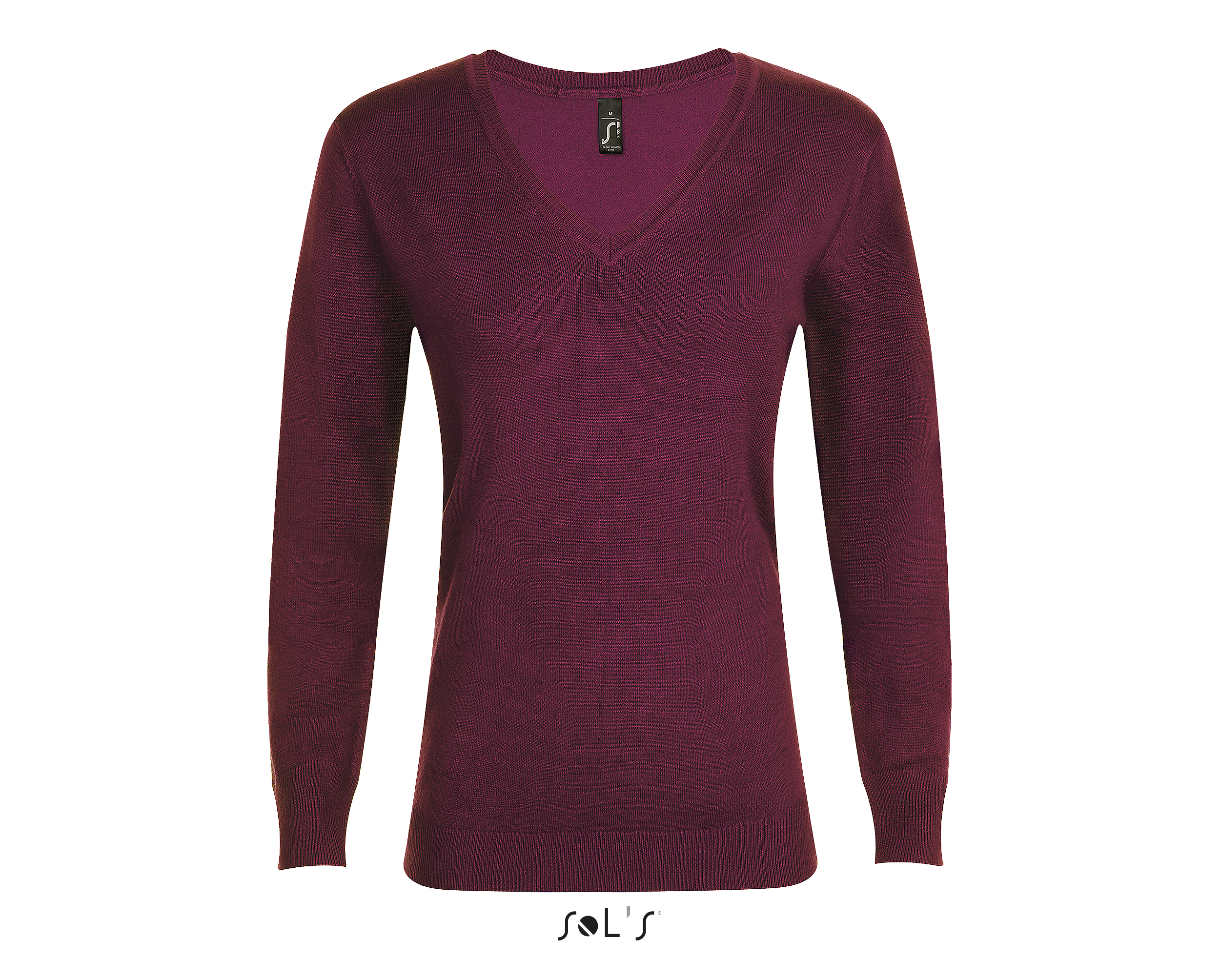 Scollo a V, punto vita sfiancato, polsini e fondo del capo con elastan e bordo a costina 1x, maniche scalvate.