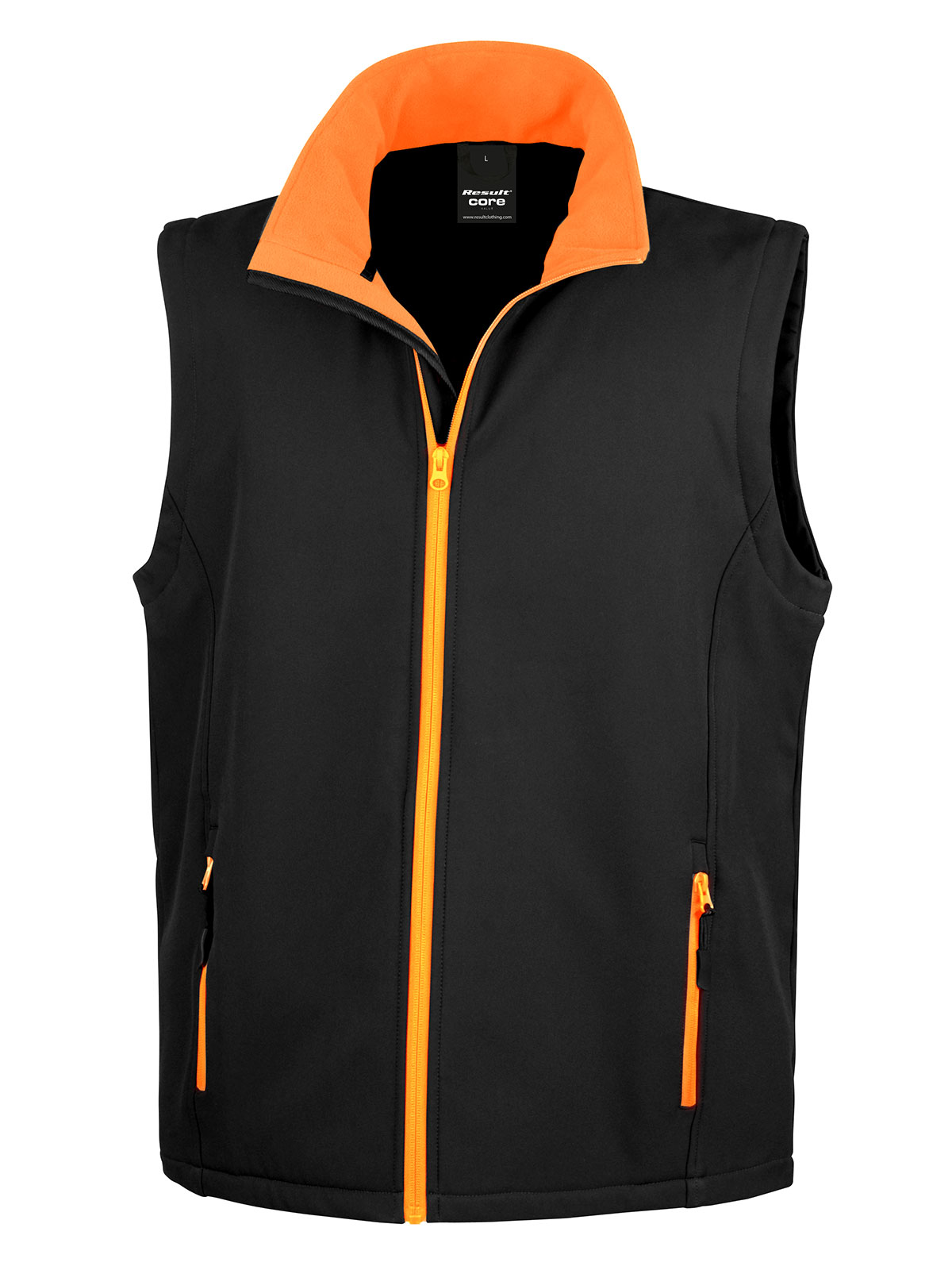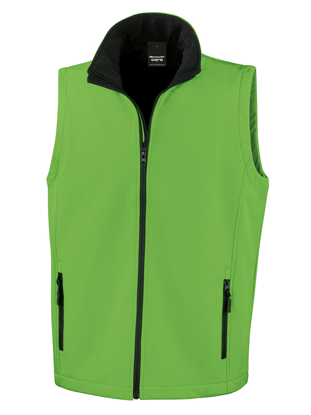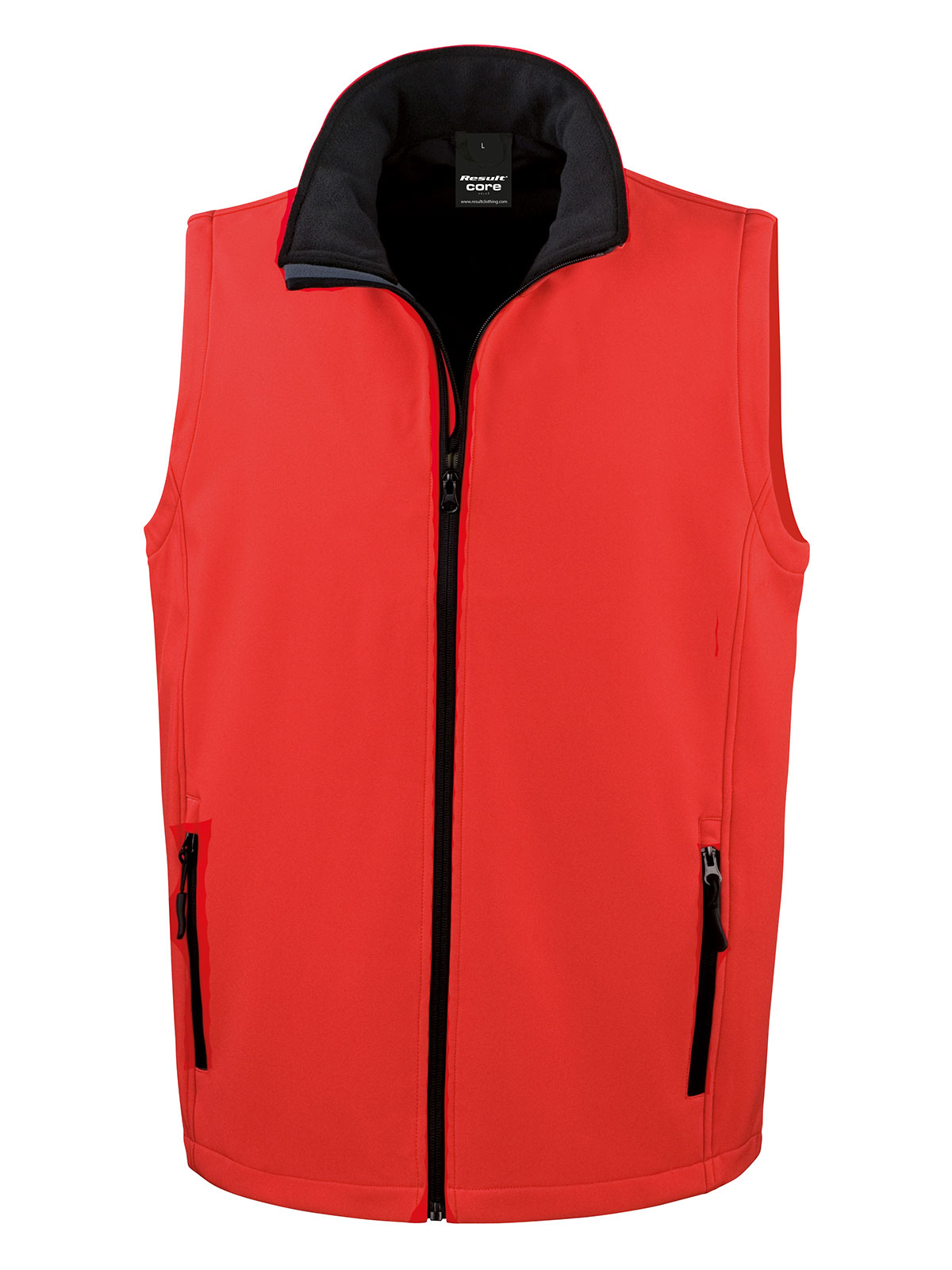 Giacca smanicata in softshell a due strati, con interno in micropile, antivento e traspirante, zip frontale con protezione per il mento, 2 tasche laterali con zip.