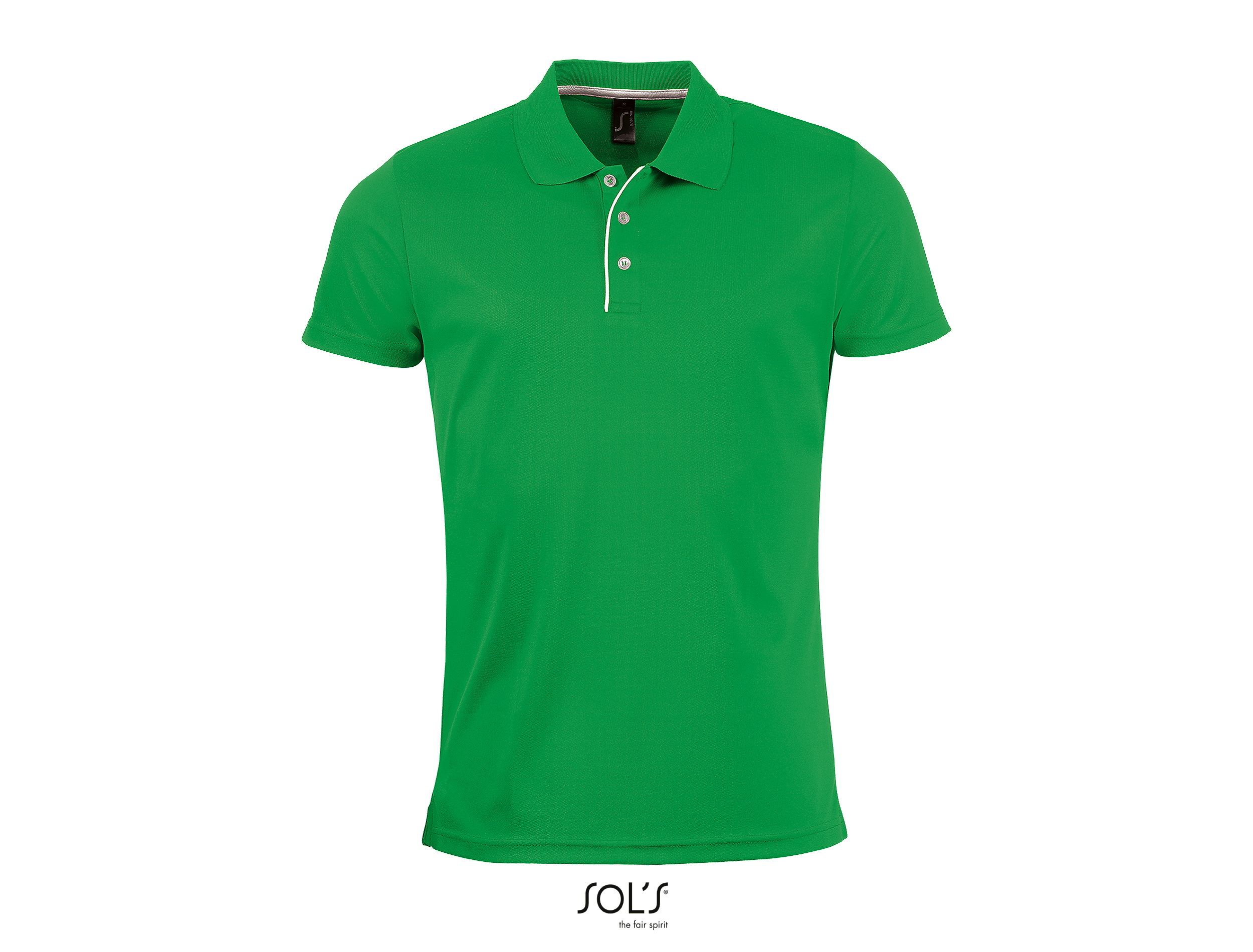 Maniche corte, 3 bottoni, asole della patta di chiusura rifinite a contrasto, fondo del capo con spacchi lateriali in contrasto, nastro di rinforzo sul collo in contrasto, ideale per la sublimazione.