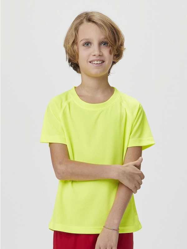 T-shirt maniche corte raglan, tessuto traspirante, struttura con cuciture laterali. Etichetta removibile.