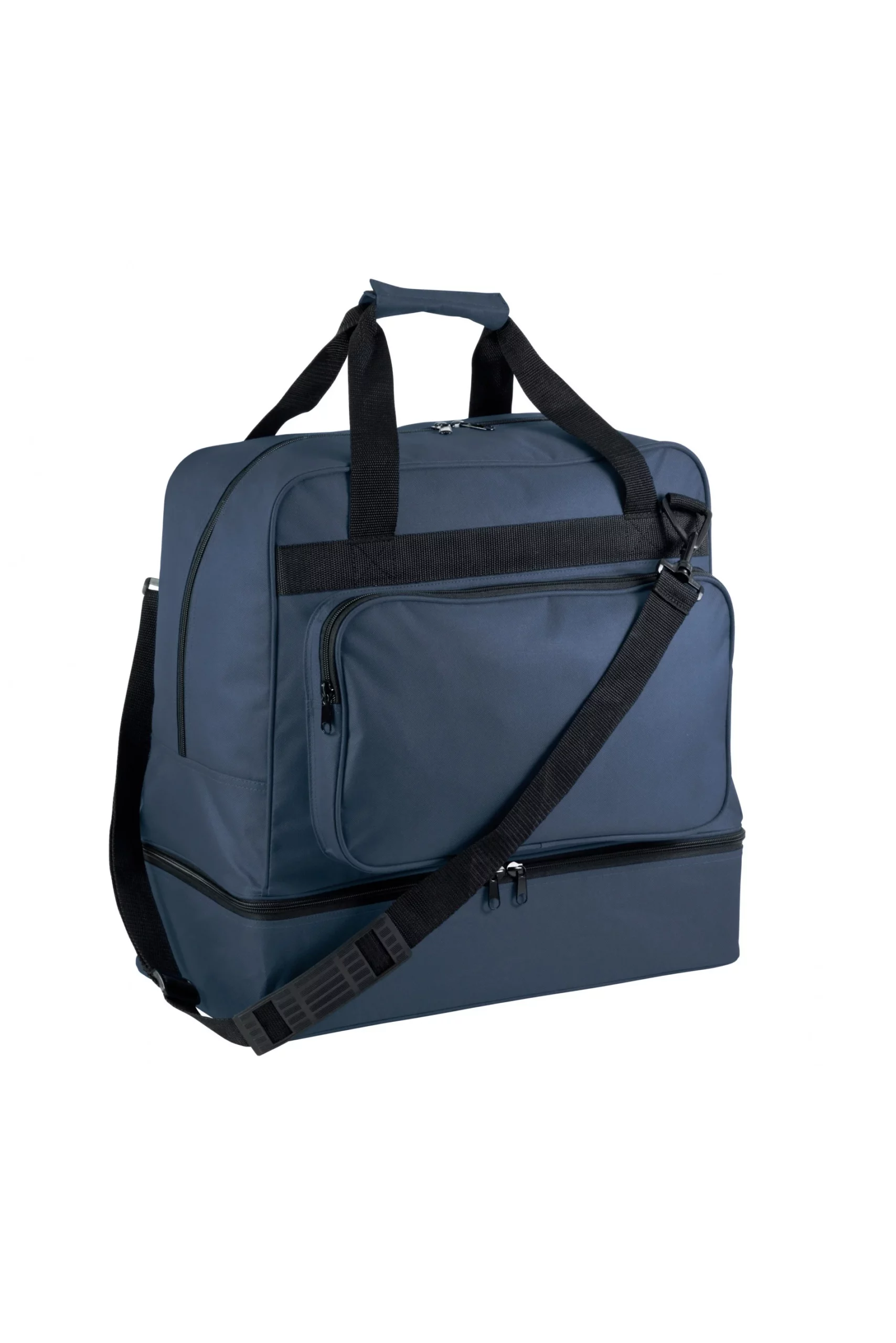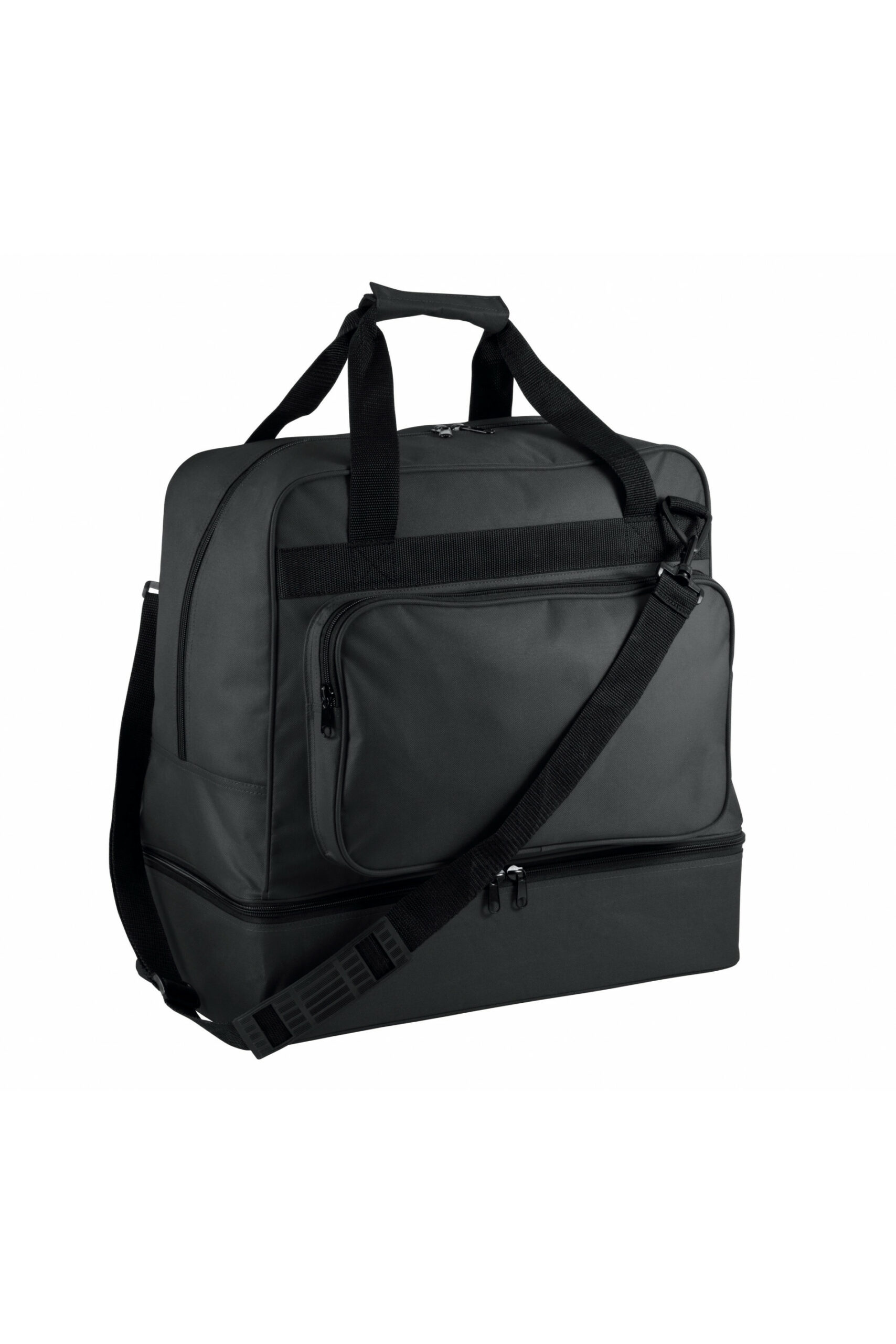 60 litri. Fondo rigido staccabile in polipropilene con piedini in plastica. Tasca frontale con zip per facilitare la personalizzazione, porta badge, tracolla staccabile con poggiaspalla in silicone. Fondo rigido in dotazione con la borsa.