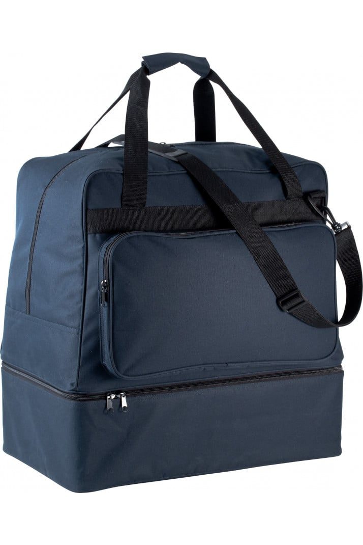 90 litri. Fondo rigido staccabile in polipropilene con piedini in plastica. Tasca frontale con zip per facilitare la personalizzazione, porta badge, tracolla staccabile con poggiaspalla in silicone. Fondo rigido in dotazione con la borsa.