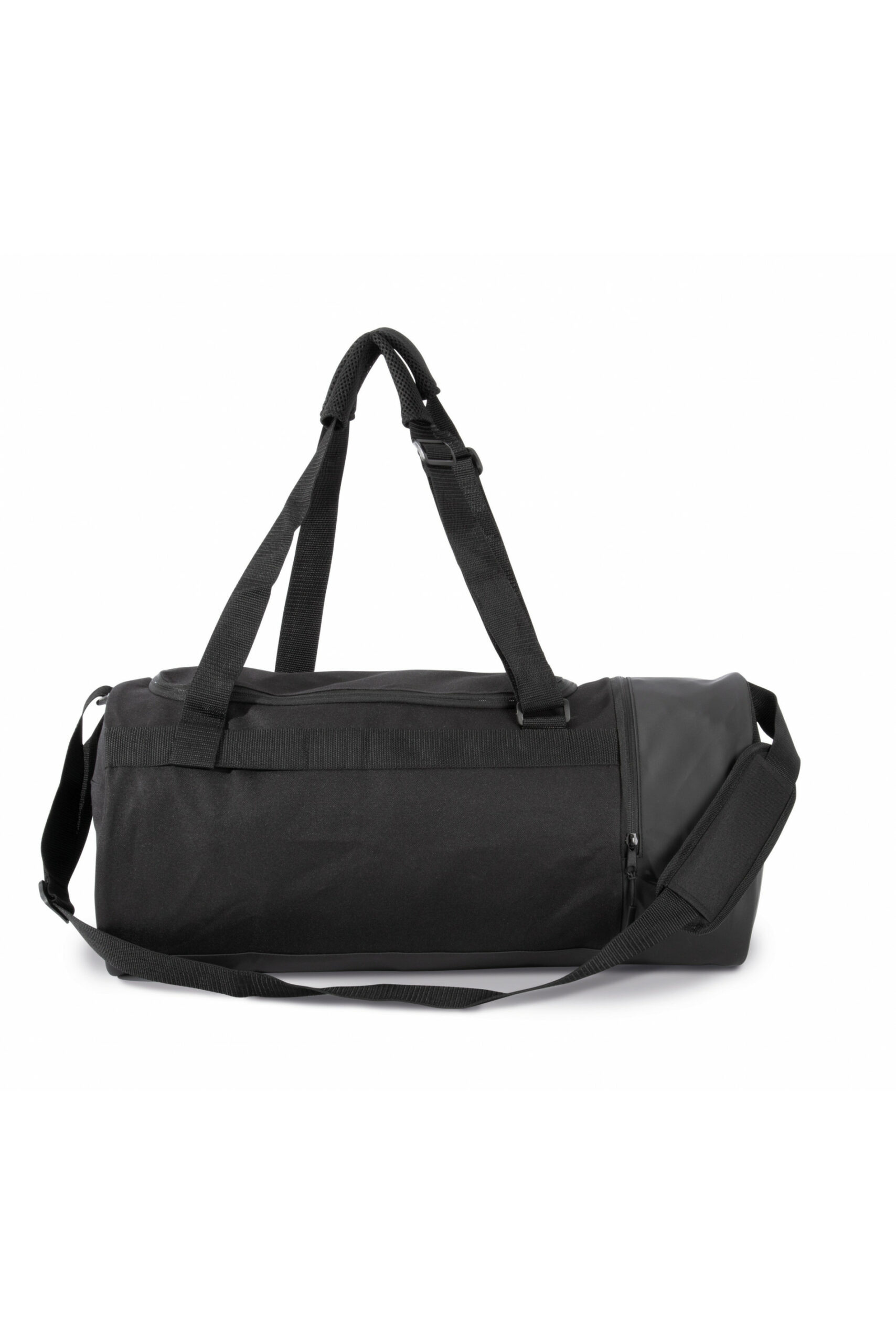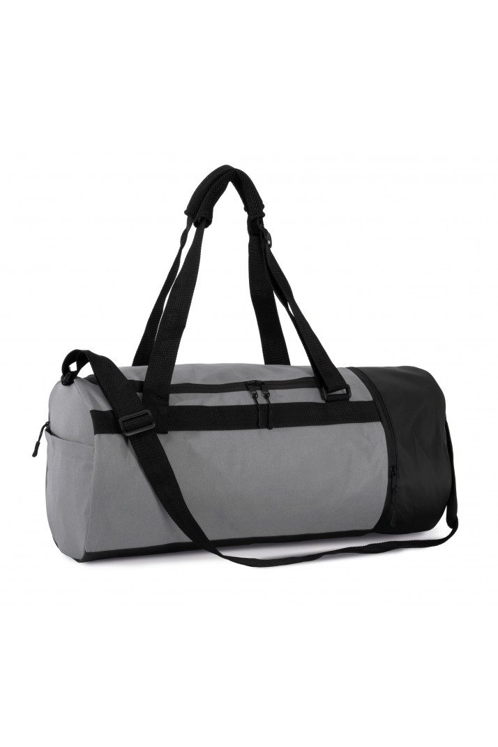 Borsa sportiva a forma tubolare in poliestere 600D. Dotata di apposito scomparto con zip separato per le scarpe e di tracolla staccabile.Possibilità di utilizzarla in modalità zaino grazie ai due larghi manici che possono fare da spallacci.
