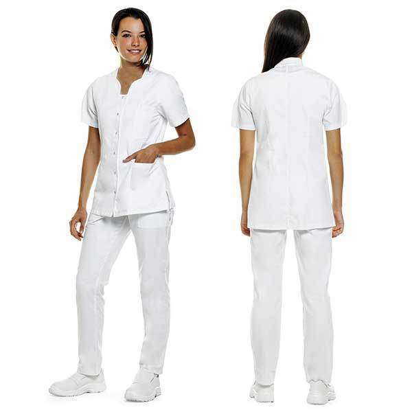 1 tasca lato cuore + 2 tasche laterali, 6 bottoni a pressione in acciaio inox resistenti alla corrusione. Certificato UNI EN ISO 13688:2013 + OEKO-TEX. Sanforizzato (trattamento che riduce il restringimento al lavaggio). Lavabile a 60 gradi. Produzione Italia.