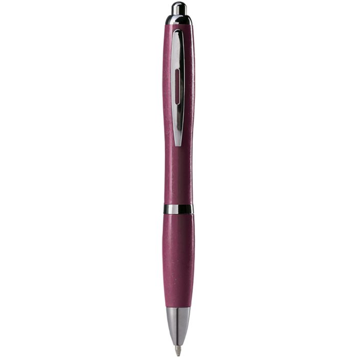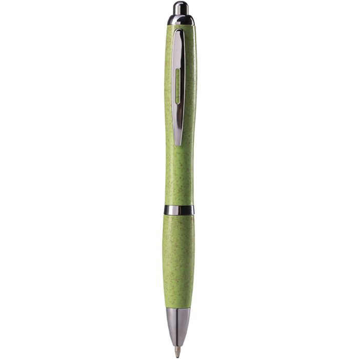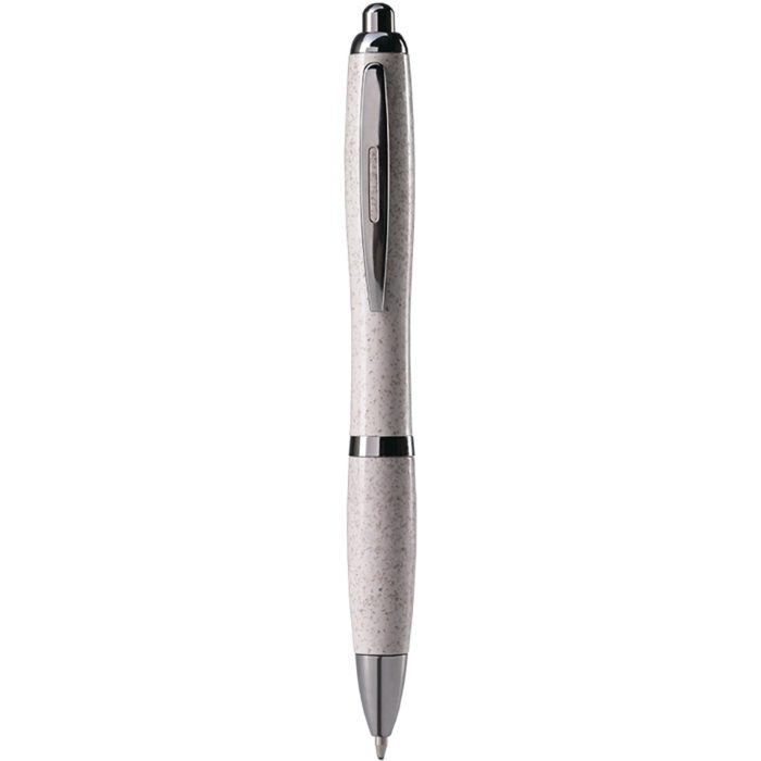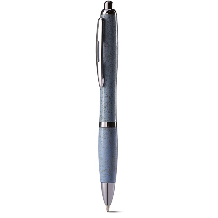 in paglia di grano e ABS, con clip in metallo, chiusura a scatto. Refill nero.