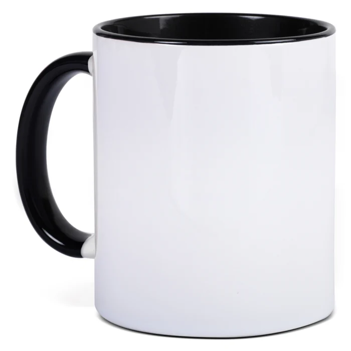 Bianca all’esterno adatta per la stampa in sublimazione, parte interna e manico colorati. Confezione singola in scatola di cartoncino.