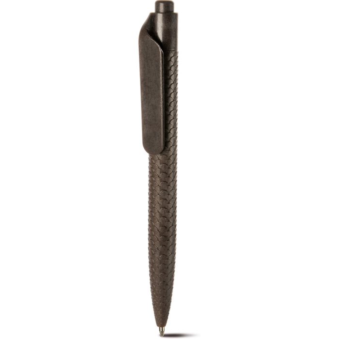 Realizzata con miscela di polvere di fondi di caffè e ABS. Stampabile solo sulla clip, chiusura a scatto. Refill nero