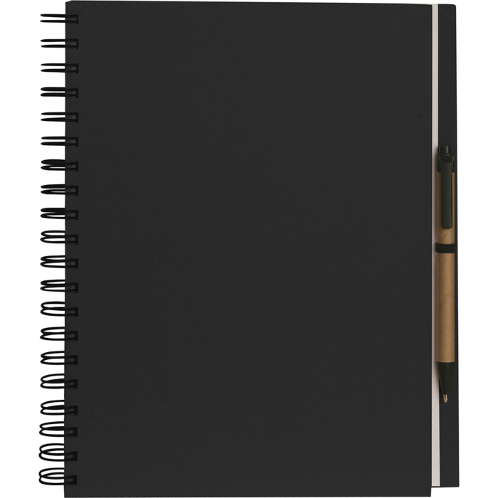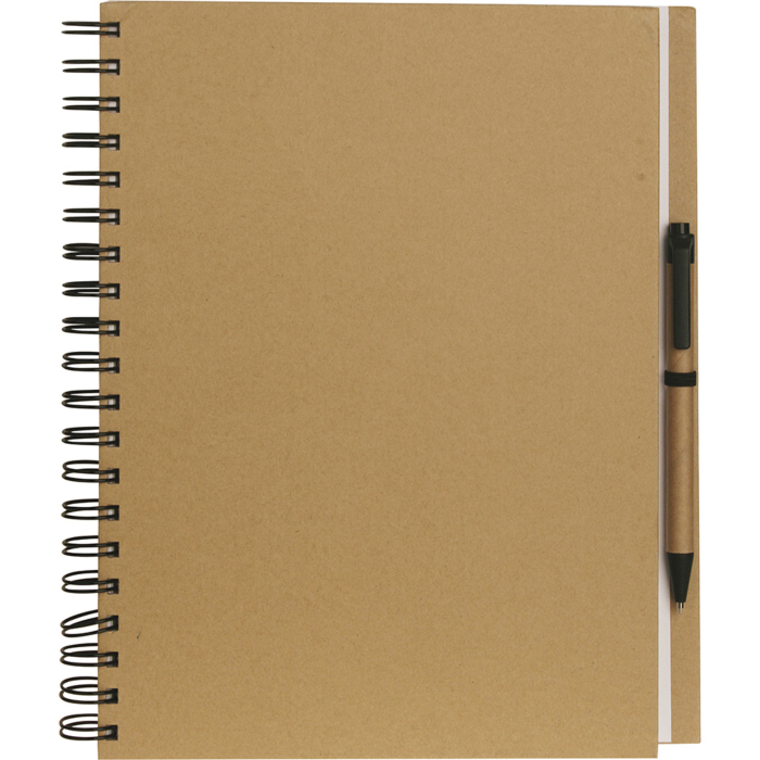 Blocco per appunti (100 fogli) in cartone riciclato e penna a sfera in cartone riciclato e plastica biodegradabile.